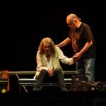 Con una performance a la altura de un atrezzo por momentos hasta sórdido y tan desconcertante como a tramos parecían estar los sentimientos del personaje interpretado por Miguel Oñate, «El Telón» y su penetrante oscuridad puso de manifiesto toda la fuerza y energía que este querido, admirado e imbatible rockero tiene dentro, dejando tras su actuación todo un rosario de ovaciones y aplausos a los que algunos presentes unieron sinceras lágrimas al contemplar un final tan inesperado como paradójicamente predecible si sencillamente logramos meternos en la piel de este personaje que ha resucitado en un taburete y envuelto por una atmósfera penetrante, a esos dioses de barro que todos llevamos dentro con la sencillez que se disfruta cuando la seguridad está de nuestro lado.