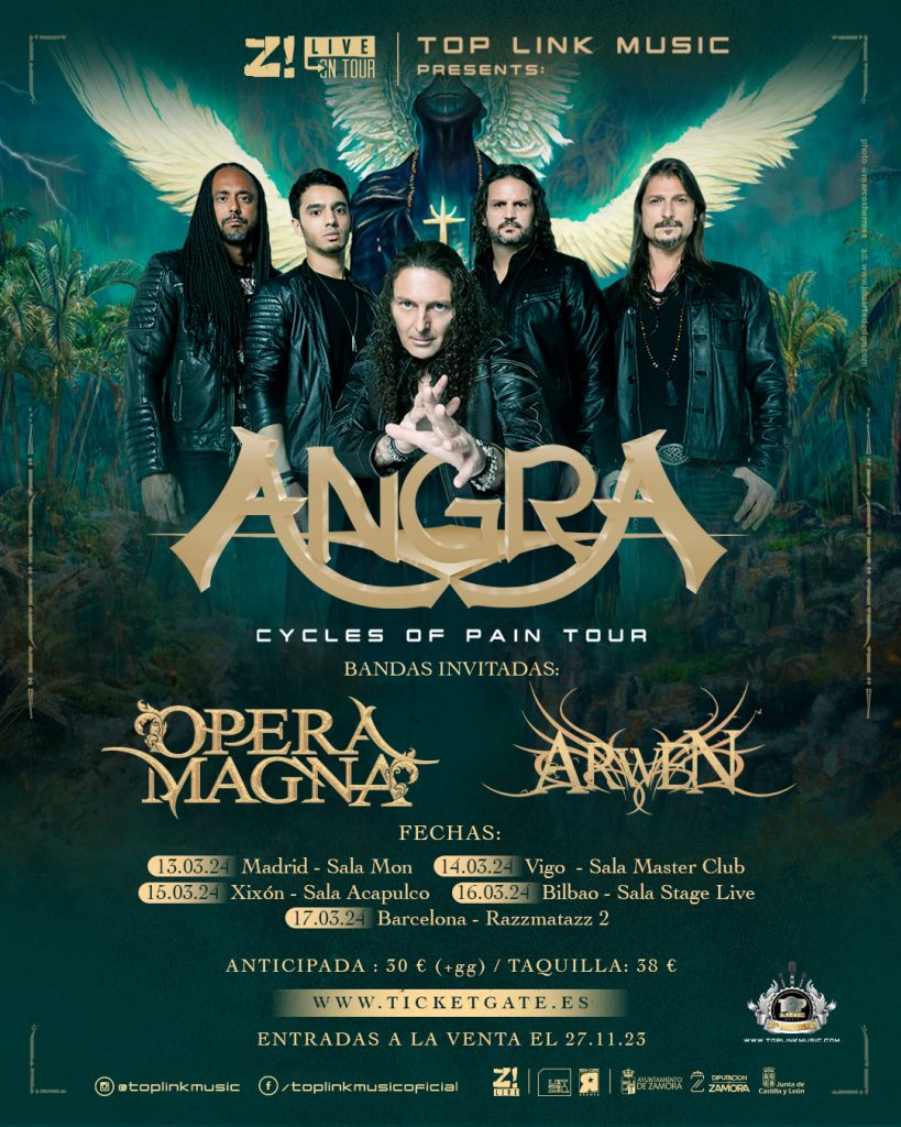 Z! Live On Tour anuncia cinco fechas confirmadas en nuestro país para la visita de ANGRA presentando su nueva gira. Las citas serán durante el mes de marzo del 2024 y la banda brasileña estará acompañada por OPERA MAGNA y ARWEN.