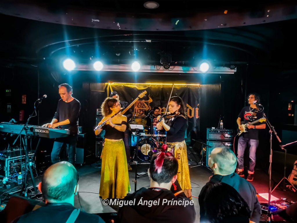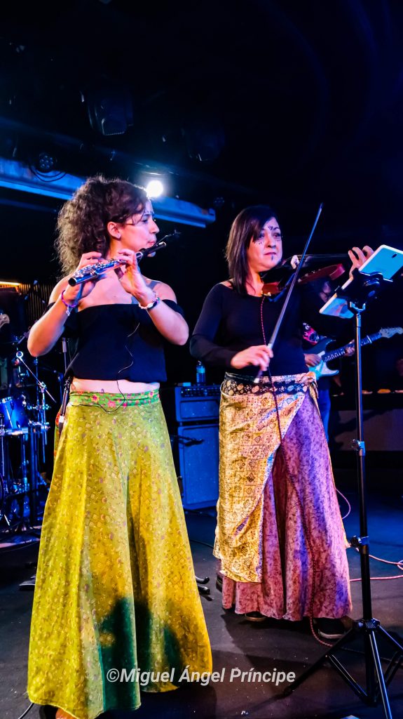 El comienzo de la actuación arranca con golpe de efecto de todos los instrumentos al unísono en “Facing My Fears”, de su último disco, introduciéndonos de lleno en los sonidos medievales y árabes que se manifestarán con más contundencia si cabe en el segundo tema “The New Love Fountain”, perteneciente éste a su primer redondo que vio la luz en 2017 y que llevaba por título “Beyond The Unexpected”, reafirmándose además la puesta en escena de los seis componentes con atril compartido por violín y flauta en primera línea, actuando en perfecta comunión entre sí y con el resto de instrumentos.
