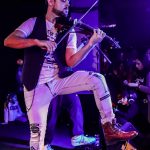 Con el tercer tema “¿Dónde Estás?”, avanzaba una noche muy bien adornada por los coros de todos los componentes de la banda excepto batería y violín ya que el primero estaba muy ocupado en marcar territorio con una percusión contundente y el segundo en repartir buen gusto a las cuatro cuerdas y espectáculo, ya que destacó como defensor de la fiesta que se vivía bajo los focos además de trasladarla fuera del escenario transmitiendo un feeling que el público recogió activamente con una entusiasta participación.