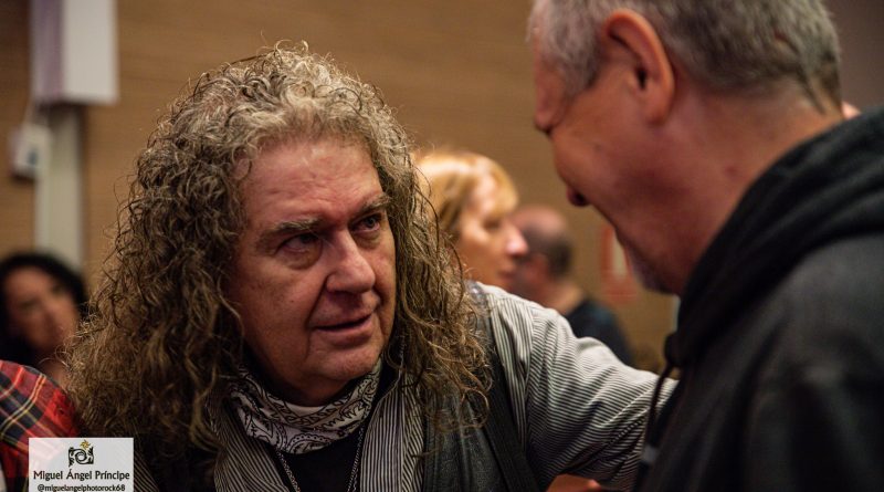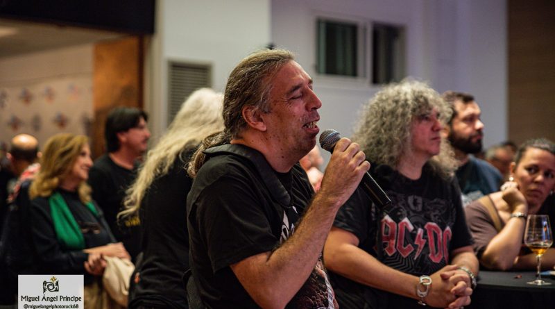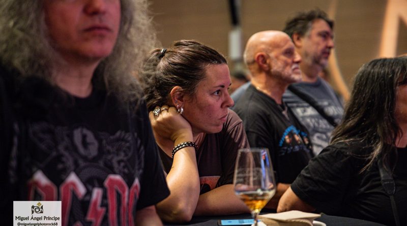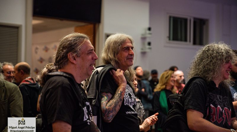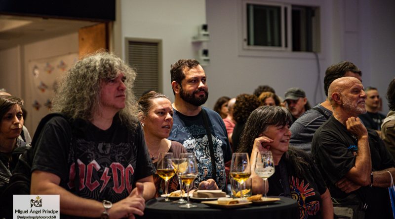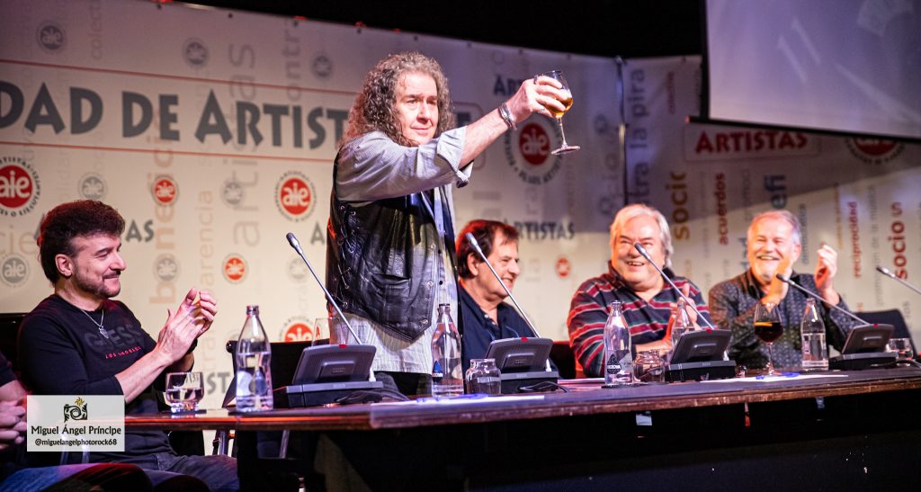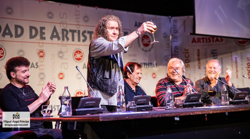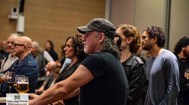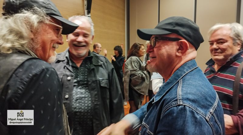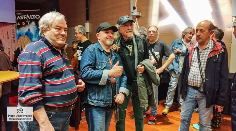 Tras los primeros corrillos y saludos de rigor, tomaban sitio en la mesa situada en el escenario para la ocasión. Julio Castejón, Enrique Cajide, Jorge García Benegas, Miguel Oñate, Raúl Santana y Paul Castejón, en representación simbólica de cada una de las etapas de ASFALTO, mientras Johan Checa actual manager de la banda tomaba la palabra frente al atril situado junto a un cartel anunciado la que será la fecha del concierto de despedida que dará fin a cincuenta años de carrera musical que sin duda forman parte de la banda sonora de la vida de todos los que estábamos allí presentes y probablemente de la mayor parte de los que estén leyendo estas líneas, y nos contaba un poco las causas de este adiós, no sin antes presentarnos a cada uno de los miembros de la mesa y poner en contesto su momento en la historia de la banda. Un emotivo video preparado por Paul con fotos y portadas de sus discos, servía de antesala para que Julio tomara la palabra, agradeciendo a todos los que nos encontrábamos allí nuestra presencia, en especial a todos los que formaron parte de ASFALTO que habían querido sumarse a la invitación, con un recuerdo especial para aquellos que por causa mayor no podían hacerlo pero que les mandaban su apoyo y cariño desde la distancia. Para a continuación acordarse de aquellos que fueron parte de de la banda ya fuera o dentro del escenario, que ya no se encuentran entre nosotros, mientras una foto de los mismos aparecía en la pantalla de video situada tras el, José «Manteca» el primer roadie de la banda, José Cebolla, el que fuera su primer manager Javier Gálvez, Félix García, Terry Barrios y el ultimo en dejarnos, uno de sus miembros fundadores Mario del Olmo.