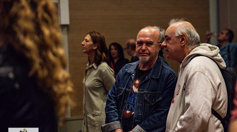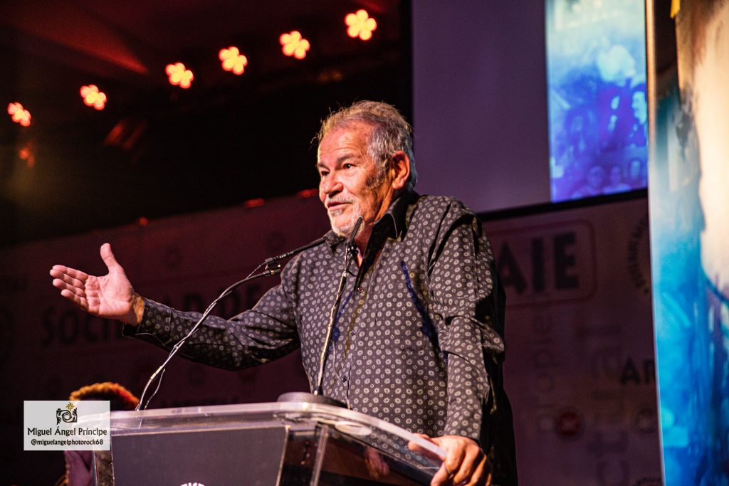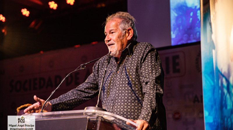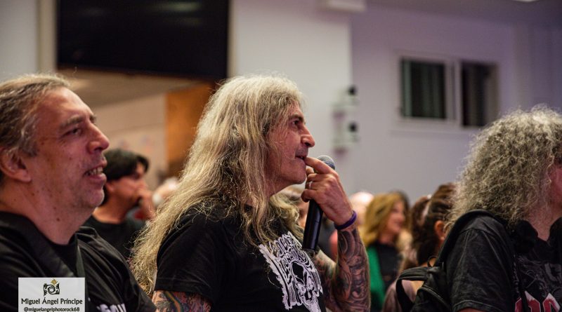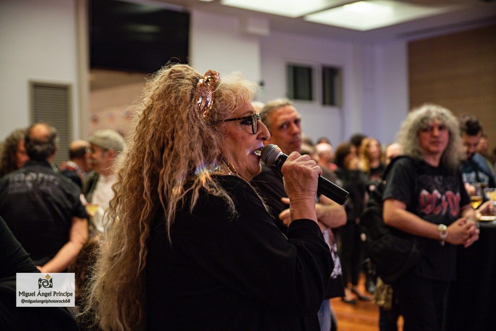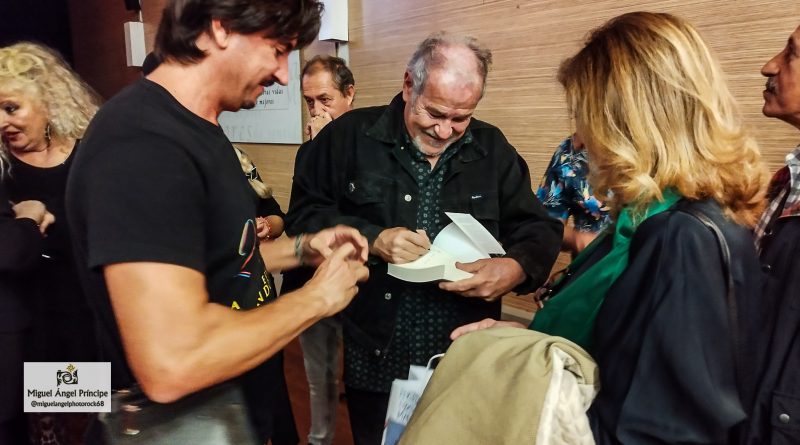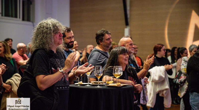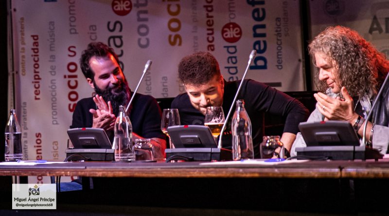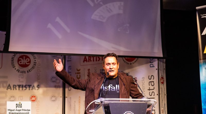 Tras los primeros corrillos y saludos de rigor, tomaban sitio en la mesa situada en el escenario para la ocasión. Julio Castejón, Enrique Cajide, Jorge García Benegas, Miguel Oñate, Raúl Santana y Paul Castejón, en representación simbólica de cada una de las etapas de ASFALTO, mientras Johan Checa actual manager de la banda tomaba la palabra frente al atril situado junto a un cartel anunciado la que será la fecha del concierto de despedida que dará fin a cincuenta años de carrera musical que sin duda forman parte de la banda sonora de la vida de todos los que estábamos allí presentes y probablemente de la mayor parte de los que estén leyendo estas líneas, y nos contaba un poco las causas de este adiós, no sin antes presentarnos a cada uno de los miembros de la mesa y poner en contesto su momento en la historia de la banda. Un emotivo video preparado por Paul con fotos y portadas de sus discos, servía de antesala para que Julio tomara la palabra, agradeciendo a todos los que nos encontrábamos allí nuestra presencia, en especial a todos los que formaron parte de ASFALTO que habían querido sumarse a la invitación, con un recuerdo especial para aquellos que por causa mayor no podían hacerlo pero que les mandaban su apoyo y cariño desde la distancia. Para a continuación acordarse de aquellos que fueron parte de de la banda ya fuera o dentro del escenario, que ya no se encuentran entre nosotros, mientras una foto de los mismos aparecía en la pantalla de video situada tras el, José «Manteca» el primer roadie de la banda, José Cebolla, el que fuera su primer manager Javier Gálvez, Félix García, Terry Barrios y el ultimo en dejarnos, uno de sus miembros fundadores Mario del Olmo.