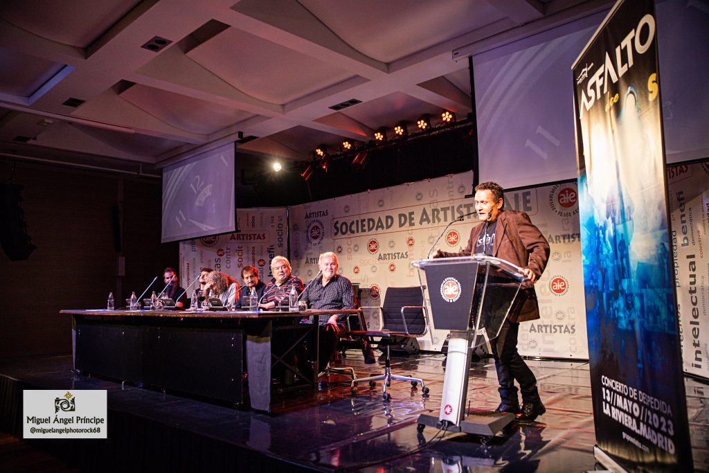 El 19 de octubre del 2022, ya forma parte de la historia del Rock de nuestro país, como el momento en el que uno nuestros grupos más grandes puso fecha a su retirara (13 de mayo del 2023 en la Riviera) en un encuentro entre colegas, amigos y medios de comunicación. Algunas pistas en sus redes sociales ya anunciaban que algo así podía pasar, con lo que al recibir hace unos días la invitación para el acto la noticia no nos pillo desprevenidos. Como no podía ser de otra forma tratándose de ASFALTO, la despedida tenia que estar acorde con la elegancia y el buen hacer que la banda a tenido siempre. reuniendo en el salón de Actos de la Asociación de Artistas y Ejecutantes (AIE) a un buen número de amigos unidos a la trayectoria de grupo, ya sea formando parte del mismo tanto sobre el escenario como entre bastidores o brindándoles su amistad, junto con los medios de comunicación y nombres ilustres de nuestra música que quisieron acompáñales en este momento tan especial, como José Carlos Molina (Ñu), Carlos de Castro (Barón Rojo), Óscar Sancho (Lujuria), Manolo González (Los Brincos), Juanjo Melero (Sangre Azul), Carlos Guardado (Burning, Craneo, Rock Con Ñ, etc.), José Barta (Goliath, Júpiter, Ñu). Félix Arribas (Los Pekenikes), Ángel Belinchón (Dry River), Carlos Hervás (Casablanca), José Martos (Barón Rojo, Topo, Niagara, etc.) o Las Supremas de Móstoles, vecinas y amigas desde la infancia de Julio.
