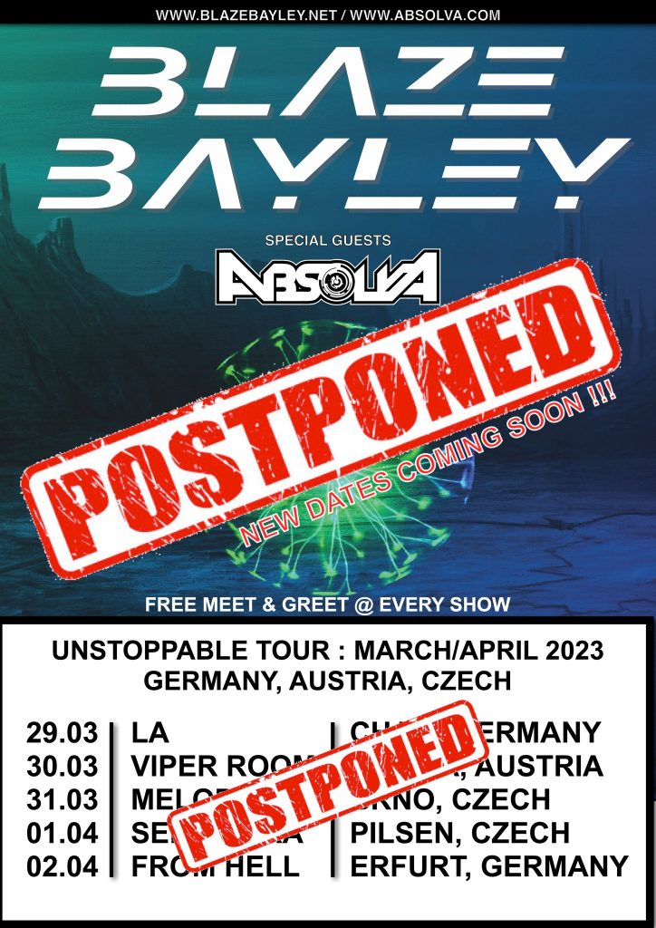 Lamentamos sinceramente anunciar que Blaze tuvo un ataque al corazón en casa ayer por la tarde y ahora está en el hospital en estado estable, esperando noticias de nuevas cirugías/tratamiento. Está de buen ánimo en las circunstancias, pero completamente decepcionado de tener que posponer nuestros inminentes espectáculos para marzo y abril. Los reembolsos de entradas estarán disponibles en la fuente, pero realmente esperamos que conserven sus entradas y lleguen a las nuevas fechas que anunciaremos tan pronto como estén programadas.