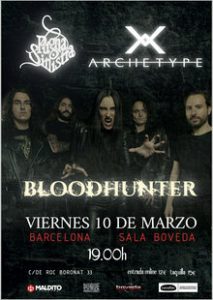 - Viernes 10 de marzo en la Sala Bóveda (Carrer de Roc Boronat Nº 33, Barcelona) con anticipada 12 € a través de Bloodhunter + Archetype X + Pugna Sinistra en Entradium y taquilla 15 €
