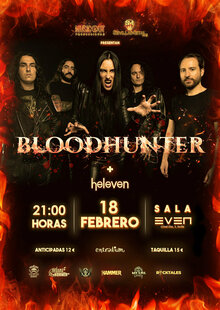 - Sábado 18 de febrero en la Sala Even (Calle José Díaz Nº 5, Sevilla) con anticipada 12 € a través de Bloodhunter en Sevilla en Entradium y taquilla 15 €