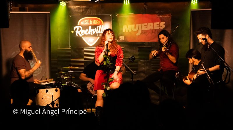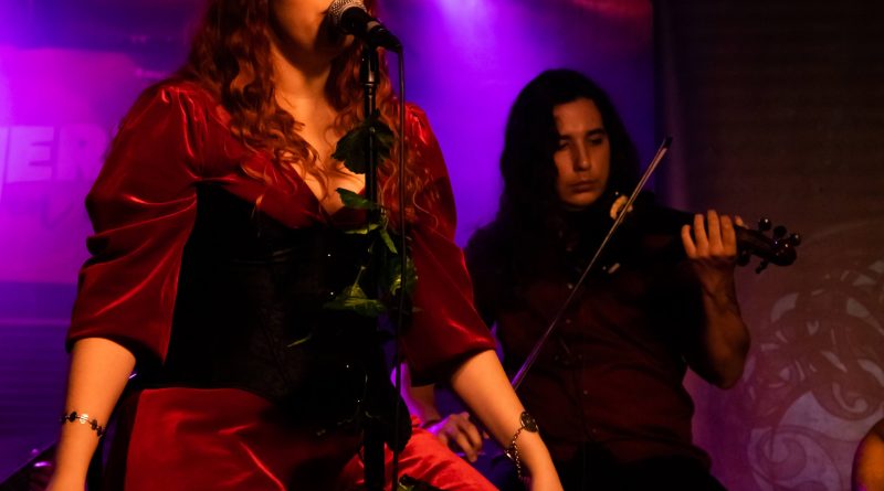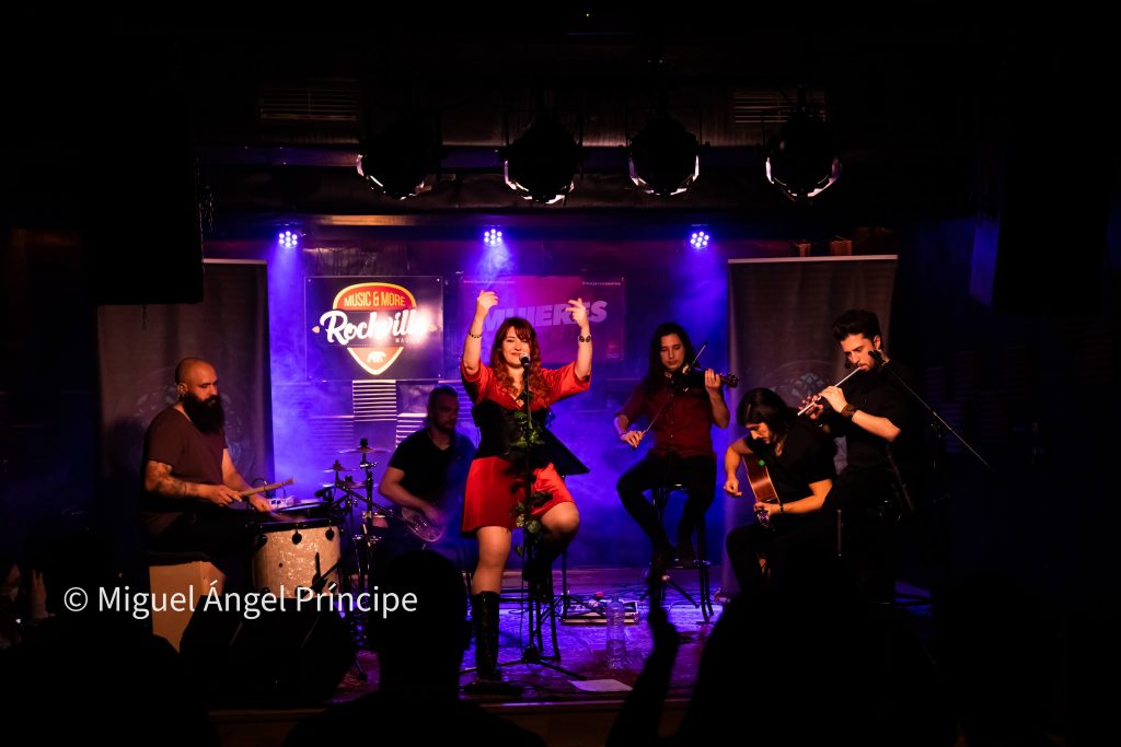 Aunque sin duda hay diferencias entre un eléctrico y un acústico, ya con este primer tema demostraron que el evento iba a tener fuerza, pues no perdieron el cañero sonido del Rock muy bien traído por la guitarra de Sergio que se empeñó en mostrarnos lo bien que se adaptan los riffs a los «desenchufados» en un tema que arrancó los espontáneos aplausos del público abriendo paso al segundo de título «Niamh», el cual vino acompañado con el saludo y agradecimiento de Xana a todos los allí presentes y de la aparición de bruma en el escenario, creando un ambiente de misterio sobre el mismo que la frontwoman se encargó de fomentar poniendo voz dulce y embelesadora cargada de nitidez y perfectamente matizada por los imparables coros de Diego que la acompañaron durante todo el desarrollo del Set List.