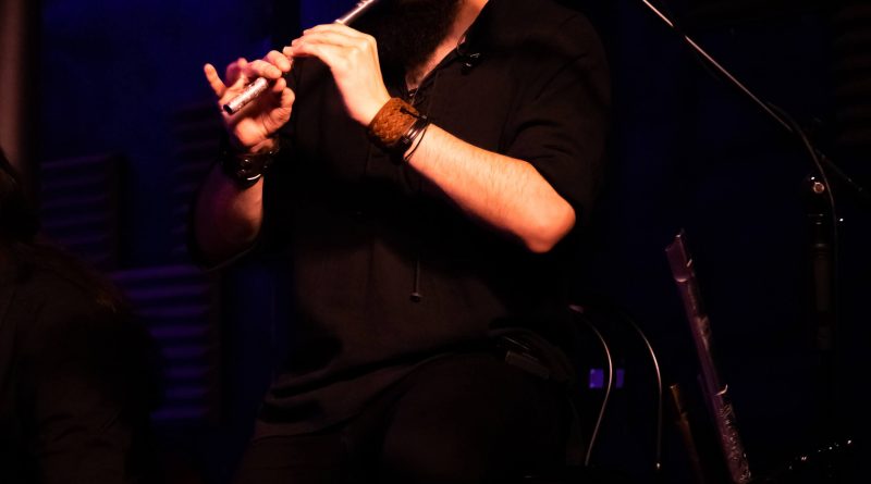 Tras una breve Intro que situó a los seis músicos sobre la escena, comenzaron a elevarse los primeros acordes de la flauta travesera de Diego, la cual iría combinando magistralmente con tres whistles a lo largo de todo el concierto. Poco a poco se fueron uniendo a Palacio el resto de instrumentos de una forma delicada pero contundente y finalmente se arrancó Xana para interpretar «La Musa Del Bosque» con tono suave pero seguro y una batería muy interesante, ya que David no utilizó en ningún momento del espectáculo unas baquetas al uso, sino unas con final en escobilla que imprimieron un sonido particular a todos los temas, ya que además jugaron un doble papel al contar en su interior con pequeños elementos percusivos que bien pudieron ser piedras pequeñas, semillas, pedazos de vidrio o de metal y que aderezan la percusión marcando un ritmo cadente muy apropiado para el acústico al que nos enfrentábamos.