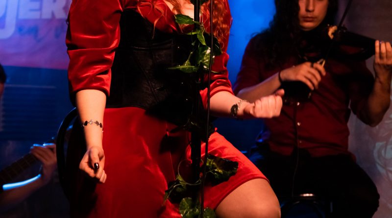 En este tema pudimos disfrutar de un toque medieval que nos situó entre lo real y la leyenda con gran intensidad en el bajo que realiza un trabajo impecable, sobre todo teniendo en cuenta que era el tercer concierto de Raúl, el cual ya cuenta con un perfecto dominio del repertorio y que además se mostró muy empastado con la batería y la guitarra, regalándonos esta última riffs matizados por un violín que protagonizó meritoriamente algunos de los temas y que, en este caso, endulzó el ambiente acompañado por el tono de media voz perfectamente gestionado por Xana, el cual ella misma subió de nuevo ahora al lado de Sergio y Diego que la acompañaron a elevar el registro sin piedad a uno lleno de garra.