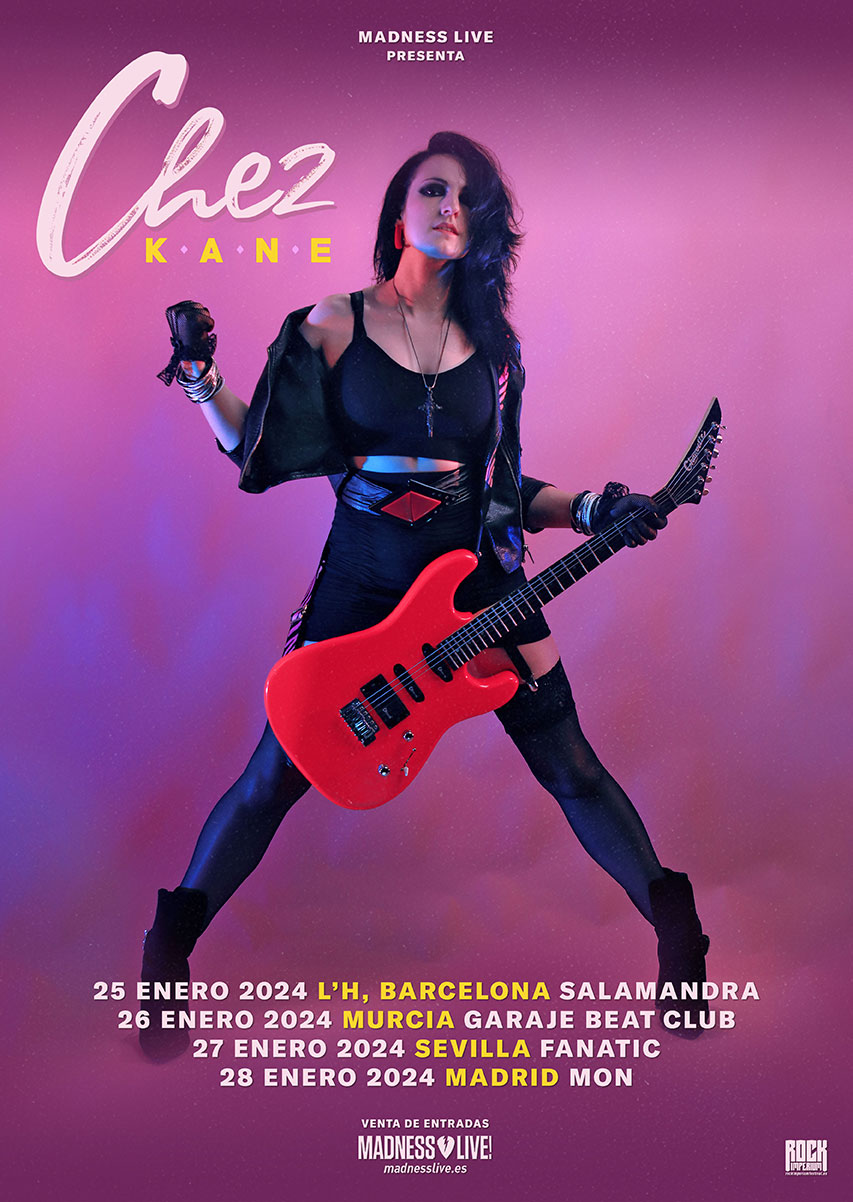 Barcelona, Murcia, Sevilla y Madrid, son las ciudades elegidas por la vocalista británica Chez Kane para llevar a cabo una gira en nuestro país tras su reciente actuación en la segunda edición del Rock Imperium Festival celebrado en pasado mes de junio en la localidad de Cartagena, un extraordinario y multitudinario evento donde la cantante hizo gala de talento a raudales desgranando temas tanto de su álbum debut Chez Kane (2021) como del segundo Powerzone, un último trabajo que vio la luz el pasado año 2022 reivindicando al igual que el primero un Hard Rock de esencia y depurado.