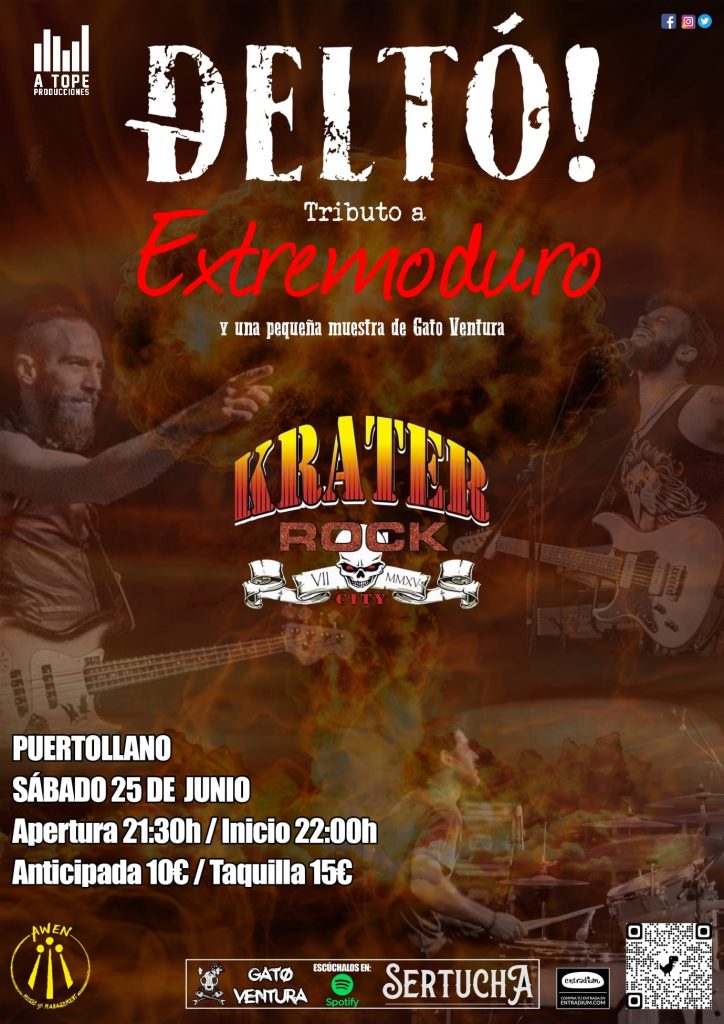 A Tope Producciones presenta a DELTÓ, una banda tributo a EXTREMODURO fundada en Badajoz por Anto Duque, Julián Blake y Gato Ventura (Córdoba) a la que posteriormente se uniría Eu Vila (Córdoba).