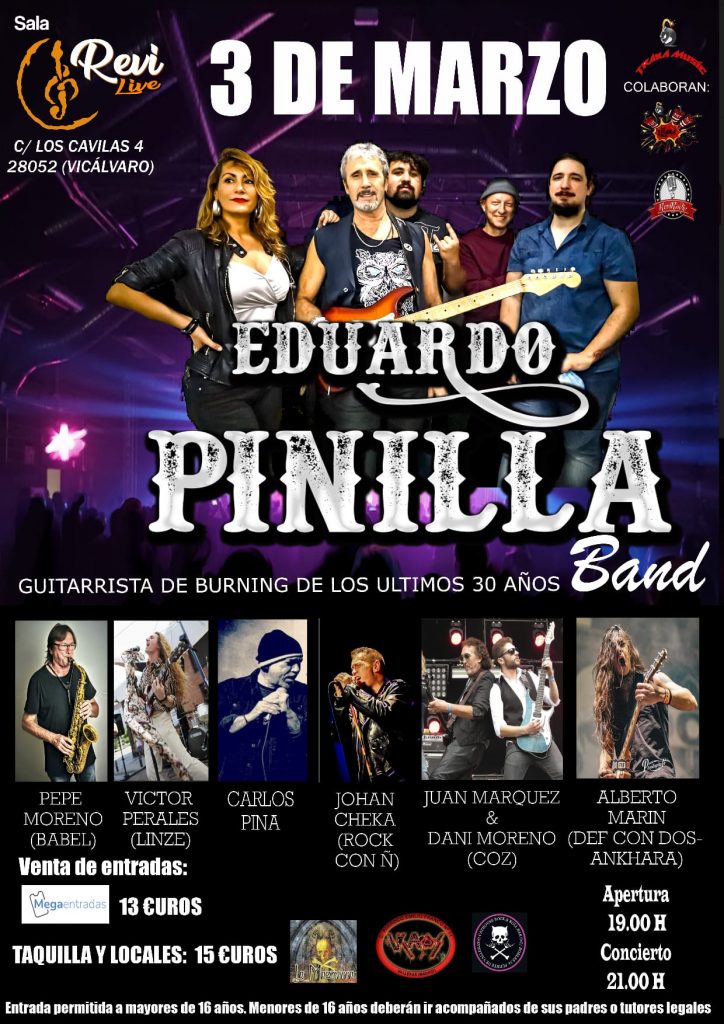 Eduardo Pinilla, el flamante ex guitarrista de BURNING entre otras míticas formaciones nacionales de las que ha formado parte, forjándose un más que merecidísimo lugar entre los principales referentes musicales españoles y tras editar su disco Stress … Historias De Más De Una Vida con la Eduardo Pinilla BLUES BAND, se sube nuevamente a un escenario para ofrecer una noche plena de Rock y Blues que tendrá lugar el viernes 03 de marzo en la Sala Revi Live ubicada en el madrileño distrito de Vicálvaro, llegando avalado por la Eduardo Pinilla BLUES BAND y junto con ilustres invitados como Pepe Moreno (BABEL), Víctor Perales (LINZE). Carlos Pina (PANZER y P.I.N.A.), Johan Cheka (Rock Con Ñ). Juan Márquez & Dani Moreno (COZ) y Alberto Marín (DEF CON DOS y ANKHARA)