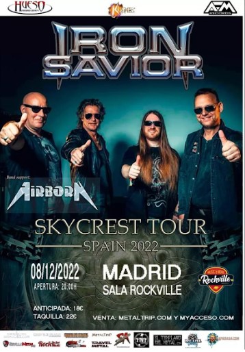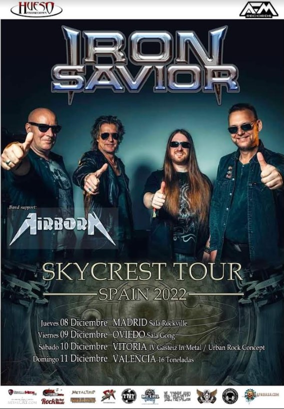 El grupo alemán de Power Metal IRON SAVIOR, recupera su aplazada gira española en Sala Rockville (Madrid) el próximo 08 de diciembre con el grupo italiano de Hard Rock AIRBORN como banda invitada. La gira lleva por nombre Skycrest Tour Spain 2022 y en ella, la formación germana presentará en directo su exitoso nuevo trabajo de estudio llamado Skycrest que vio la luz el 04 de diciembre del pasado año 2021 a través de AFM Records, siendo acogido éste con excelentes críticas por parte tanto de los seguidores como de los medios especializados.