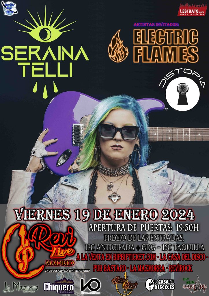 Concierto de SERAINA TELLI, ELECTRIC FLAMES y DISTOPIA el viernes 19 de enero en Madrid (Sala Revi Live)