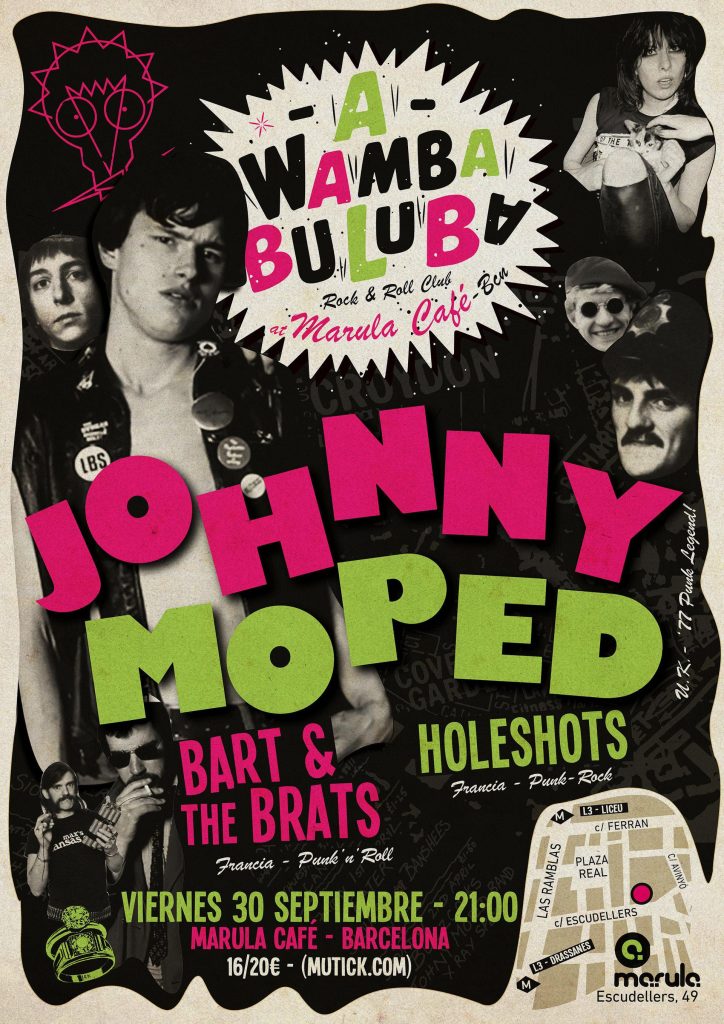 El Marula Café acogerá el viernes 30 de septiembre la actuación de JOHNNY MOPED, el grupo de Punk Rock británico formado en el sur de Londres a mediados de la década de los 70 por cuyas filas pasaron Captain Sensible antes de los DAMNED y la mismísima Chrissie Hynde antes de PRETENDERS.