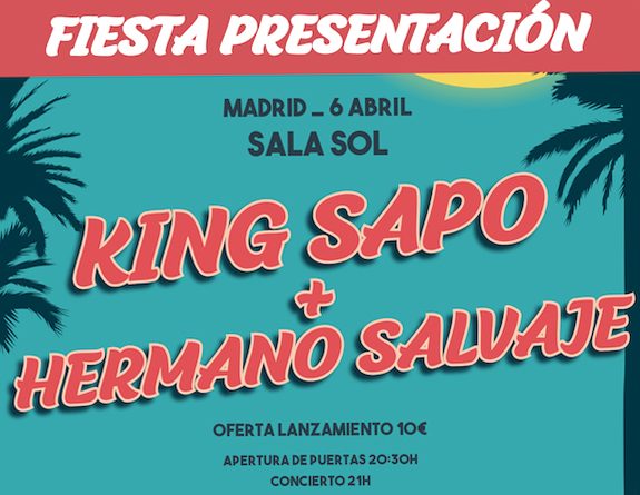 Después de realizar los conciertos de Valencia y Alicante con las bandas SEXY ZEBRAS + HERMANO SALVAJE con Sold Out en ambos conciertos, ahora le toca el turno a Madrid, y será el próximo miércoles 6 de abril en la sala Sol con los conciertos de KING SAPO + HERMANO SALVAJE.