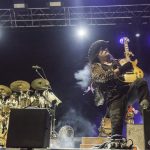 Llegados a ese momento de la noche Víctor de Andrés tomaba la palabra para versar sobre «La Vida Pirata» en un divertido monologo jarra en mano a modo de presentación del tema. Aprovecho este pequeño inciso entre tanto derroche vocal para hablar un poco de la parte instrumental que como siempre hizo que aquello sonara a la perfección, empezando por el propio Víctor a la guitarras, acompañado a las mismas por Seoane, los siempre sonrientes Moha al violín y Josema en los vientos Fernando a las cuatro cuerdas, Manuel Ramil en los teclados y como no al frente de la tripulación y la batería Txus.  “Tu madre es una cabra” interpretado igual que el anterior por Erik. Al borde de cumplirse las dos horas de concierto  sonaba «Bandera negra» para poner el punto final momentáneo.