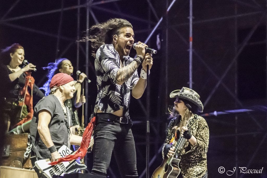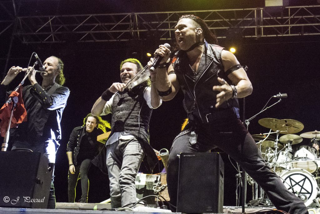A la hora prevista algo que siempre es de agradecer y con una plaza en la que prácticamente no cabía un alma más, sonaba la intro y la banda ocupaba sus puestos para arrancar con «Al Abordaje” perteneciente a su último trabajo Bandera Negra con Erik Cruz como primer vocalista de la noche, acompañado a los coros por Xana Lavey (CELTIAN) y Alba.  Tete Novoa derrochando energía como es habitual en el tomaba el relevo para interpretar  “El libro de las sombras” que conto con la ayuda de Xana  para suplir la voz de Patri, todo un clásico de la banda como «Molinos de viento» con Tete a la voz y  coreado por los cerca de las 15.000 gargantas que disfrutaron de la noche, dio paso a una pequeña pausa en la que Txus abandonaba su puesto tras la batería, para dirigirse a todos contarnos que están buscando un cantante de primer nivel (en el momento de escribir estas líneas sabemos ya que serán Tete y Charly los encargados de hacerlo), para suplir provisionalmente  a Zeta cuya baja se prolongara al menos un par de meses a causa de las dos hernias discales que padece. Agradecía enormemente el esfuerzo y predisposición para echarles una mano a pesar de sus propios compromisos profesionales,  Tete Novoa, Rubén Kelsen, Erik Cruz, Charly López, igualmente nos contaba que Patricia aunque aún no estaba recuperada del todo, esa misma noche ya se subiría al escenario para cantar un par de temas y ir probando como se encontraba.