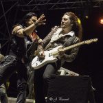 Un nuevo clásico “Astaroth” de nuevo interpretado por la gran voz de Tete que aprovecho el momento para animar al publico a cantar con el, haciéndose escuchar sin la necesidad de micro, un gesto por otra parte muy suyo que no por habérselo visto hacer en muchas ocasiones deja de asombrarme.  Erik tomaba de nuevo el testigo, acompañado en esta ocasión por Alba para interpretar juntos “El amor brujo”, he de decir que ambos me dejaron gratamente sorprendido por su calidad vocal a lo largo de toda la noche, tal vez por el hecho de ser los únicos a los que no había tenido ocasión de escuchar en directo hasta ese día. (Probablemente todos aquellos que tengáis niños, habréis escuchado a Erik cantando como el reno Kristoff en Frozen) “Tequila tanto por vivir” hacia que la plaza se convirtiera en una fiesta que subía de temperatura con otro nuevo relevo por parte de Tete  que ponía todo su alma en “Hasta que el cuerpo aguante”  y que continuo con “Hoy toca ser feliz” con la voz de  Charly López el único de los vocalistas invitados a esta fiesta que quedaba por hacer su aparición sobre el escenario. “La ciudad esmeralda” nos traía de nuevo a Patri sobre el escenario a la que al igual que en su anterior aparición no se la vio en plenas facultades. Tete subía una vez más al escenario y pedía que todos encendiéramos las linternas de nuestros móviles creándose un momento mágico en el que la plaza se lleno de luz mientras sonaba “Desde mi cielo”.