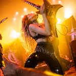COBRA SPELL los cinco componentes de la joven banda liderada por la guitarrista Sonia Anubis, hacían su aparición sobre las tablas para ya desde ese primer segundo regalarnos un concierto lleno de potencia, con grandes riff de guitarra por parte de Sonia y Esmée y apoyados en una contundente base ritmica formada por Angelina al bajo, Léonard a la batería y con la voz polifacética y carismática de la barcelonesa Kristina Vega que comenzó la gira en sustitución de Alexx Panza por problemas de agenda y que tan solo unos días antes a este concierto se anunciaba su incorporación definitiva a la banda en sustitución del mismo.