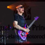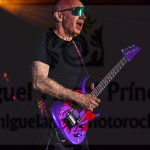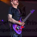 La primera vez que Rai adelantó su posición y se colgó la guitarra fue en “One Big Rush” y a su finalización, Satriani volvió a cambiar el instrumento optando esta vez por el negro como su indumentaria e interpretar “Blue Foot Groovy” antes de que sus fans rompieran en una cerrada ovación al reconocer “Flying In A blue Dream”, sin duda uno de sus himnos. Seguimos bajando pulsaciones con “Faceless” y tras “Crystal Planet”, Joe Satriani complació al respetable con uno de sus hits: “Summer Song”, con la que nadie se quedó sin corear cada una de las notas de la canción mientras de nuevo se proyectó el videoclip correspondiente donde vimos a nuestro protagonista con algo más de pelo y entre coches de carreras. ¡Ambiente ochentero total!