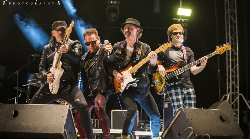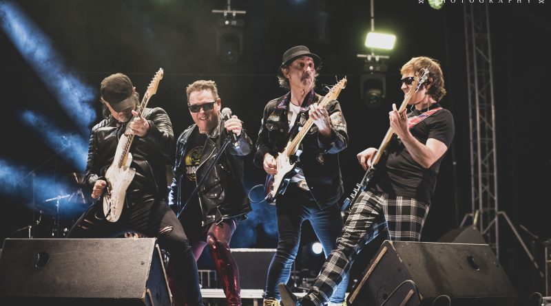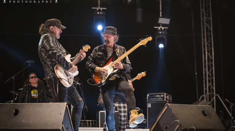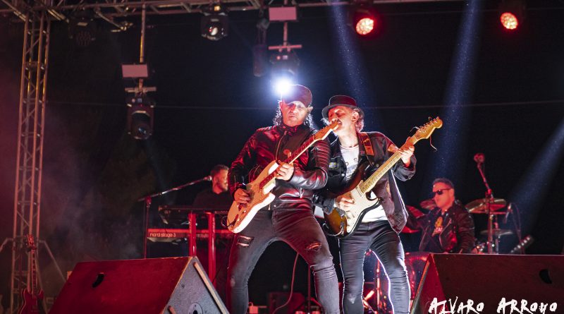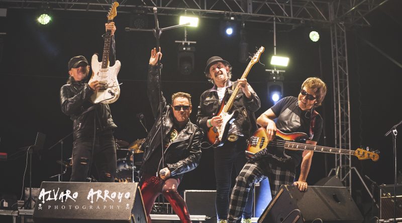 Ya metidos en la recta final aún quedaba tiempo para seguir disfrutando y cantando con «No hay tregua» de los pamplonicas BARRICADA y «Sábado en la noche» del argentino Moris. Los bises como no podía ser menos en una noche cargada de himnos de Rock`n`Roll perfectamente ejecutados llegaba de la mano de dos de esos temas inmortales que forman parte de la memoria sonora de todos y que fueron coreados como si fuera una única garganta por las cerca de 10.000 personas que abarrotaban la esplanada frente al escenario «Días de escuela» y «Mis amigos» que en algunos pasajes fue hábilmente tuneado mencionando a Aluche por Johan Checa la voz de la Ñ, el que fuera cantante de CRÁNEO y que estuvo magnifico tanto a la voz como animando al publico y dejando un comentario o anécdota en cada tema para poner en contexto cada canción.