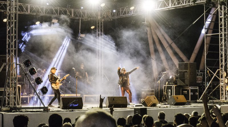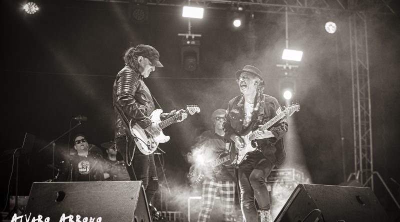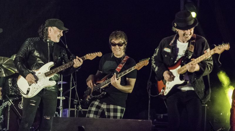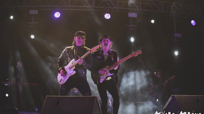 Mientras nosotros regresábamos a la zona del publico sonaba ya «Reina de la noche» del maestro Miguel Ríos. «Litros de alcohol» de RAMONCIN era el segundo tema de la noche, para continuar con «La noche de que te hable» de LEÑO. Al presentar el siguiente tema «Peligrosidad social» Johan recordaba la figura del que fuera su creador, Manolo Tena en su época con CUCHARADA con un mensaje que a pesar de los años pasados tristemente para algunos aún esta vigente al que siguió otro tema de Manolo «Frio« compuesto junto con Jaime Asúa cuando ambos militaban en las filas de ALARMA. Con Kacho Casal en la batería y Carlos Guardado al bajo formando parte de La Ñ estaba claro que BURNING la banda de la que han formado parte durante cerca de 30 años tenia que sonar esa noche en Aluche y lo hizo con dos clásicos «Mueve tus caderas» y el entrañable «Una noche sin ti«, como dato curioso durante las fiestas del 2019 tocaron ASFALTO y BURNING con lo que tres de los miembros de ROCK con Ñ presentes durante esta noche los dos ya mencionados y Nacho de Lucas teclista de ASFALTO, repetían sobre las tablas. La música de Salvador Domínguez y la letra de Miguel Ríos sonaba con «Banzai«. La presencia de Juanjo Melero a la guitarra al igual que en el caso de sus compañeros garantizaba que en algún momento de la noche sonaría SANGRE AZUL como efectivamente sucedió con «Dueño y señor» que precedería a dos grandes versiones «Vamos muy bien» de ÓBUS y el «Concierto para ellos» de BARON ROJO.