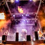 Para ir cogiendo confianza con sus temas, mencionaremos algunos destacados por su calidad, estribillos pegadizos y sobre todo ritmos melódicos que unieron a la perfección riffs con armonía y sobre todo percusiones muy centradas en contraponerse con contundencia a la voz aguada del cantante, ejecutándose un efecto muy persuasivo sobre el escenario representado en «Fe Suicida», «Diez Años», «Confía En Mí» o «Dalia», canciones propias con excelente acogida que dieron pie a la sorpresiva y metalera llegada de la versión del «Hijo De La Luna» de MECANO llevada al terreno de NAHEVIA y muy cercana a la que también hizo del tema el grupo STRAVAGANZZA, una incontestable versión del clásico «Los Rockeros Van Al Infierno», el siempre evocados «Wasted Years» de MAIDEN y ese escalofriante brillo que la banda dio al Festival con TRIANA y su inmortal «Abre La Puerta», tema que fue el apoteosis final para cerrar una primera edición que a la vez abre las puertas a lo que esperamos se convierta en una tradición en Villarejo De Salvanés.
