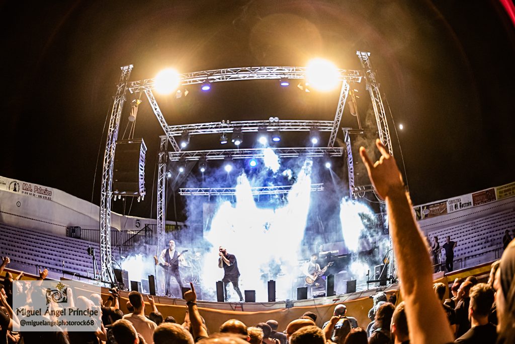La Plaza De Toros de la mencionada localidad fue el enclave elegido y su elección no fue al azar, ya que se construyó gracias a los vecinos y es uno de sus bienes más preciados ofrecido en esta ocasión para que tres formaciones derrocharan sonido, luz y calidad a partir de las 22:00 horas ante un generosa feligresía que vio procesionar antes sus ojos a ZYPHRA, SAUROM y NAHEVIA, siendo los últimos oriundos de la mencionada población que sin duda agradeció masivamente el Festival que contó con el imprescindible apoyo del Consistorio.