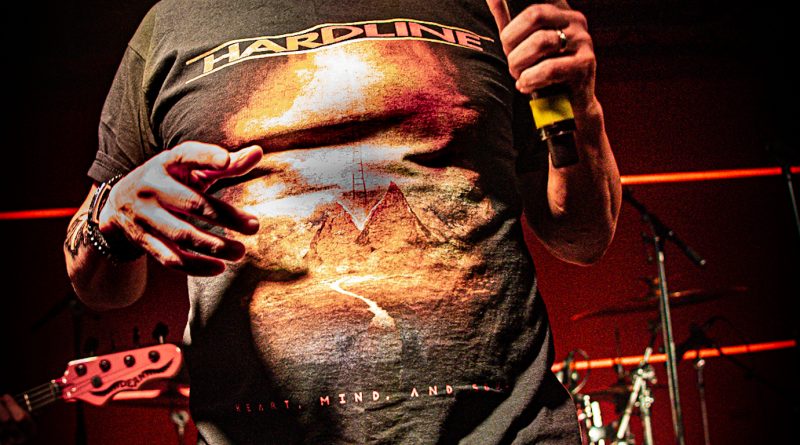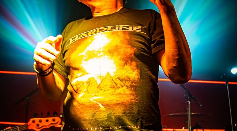 Ante una audiencia que había crecido hasta alcanzar entorno a los 200 asistentes y bajo una puesta en escena bastante austera sin elementos visuales propios y con un equipo de sonido compuesto únicamente por un amplificador Randall y una pantalla Marshall con cabezal ENGL, se presentaba HARDLINE en escena con el ritmo Hard Rock de “Fuel To The Fire” y el medio tiempo épico de “Surrender”, ambas pertenecientes a su última obra de 2021 Heart, Mind And Soul.