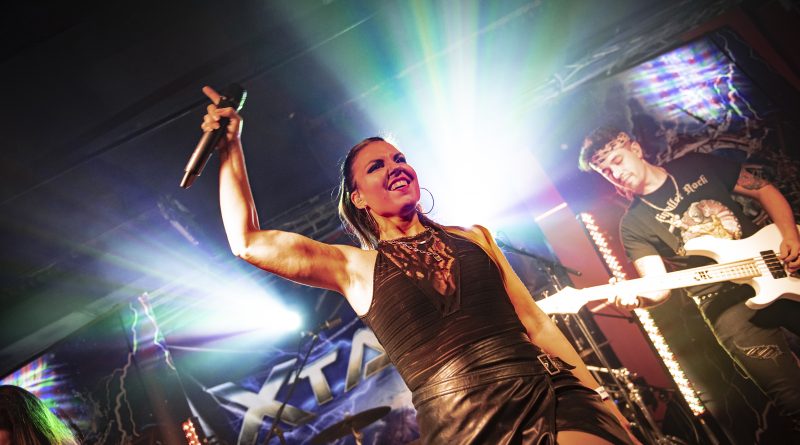 Uno de los momentos álgidos llegó cuando Abel al piano y Silvia a la voz interpretaron magistralmente «Crashing Down» con una puesta en escena soberbia al colocar el teclado en el centro de la escena dotando a la composición de alma y sentimiento para despertar la admiración y entrega de todos los allí presentes, dando luego comienzo «The Clock» para volver con ella al on fire de la actuación tras un poderoso sólo de batería en un espectáculo que ya no cesaría con la sucesión de clásicos, «Welcome To My World», «Play With Fire» o «The War», canciones que hicieron brillar tanto los redobles del baquetero como los solos de una guitarra solista puntera que encontró apoyo en una rítmica poderosa y en la voz contundente de Silvia, quien fomentó la crudeza de sus compañeros dinamizando la actuación en un final apoteósico gracias a «Into The Fire», «Eye Of The Storm» y «Die Young» para dejar un más que buen sabor de boca entre los seguidores que vieron acercarse el final totalmente satisfechos con un show donde XTASY, estuvo en perfecta comunión sobre el escenario dejándonos interesantes impresiones para el futuro de este grupo que cuenta con ganas y potencial.