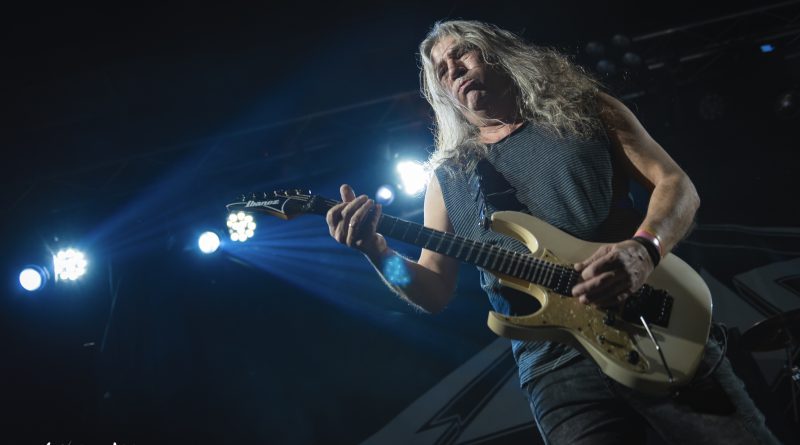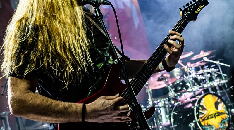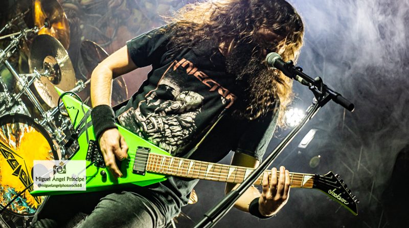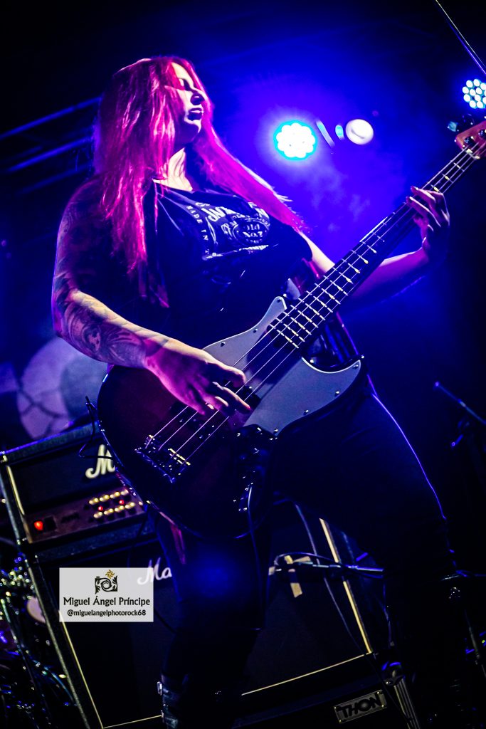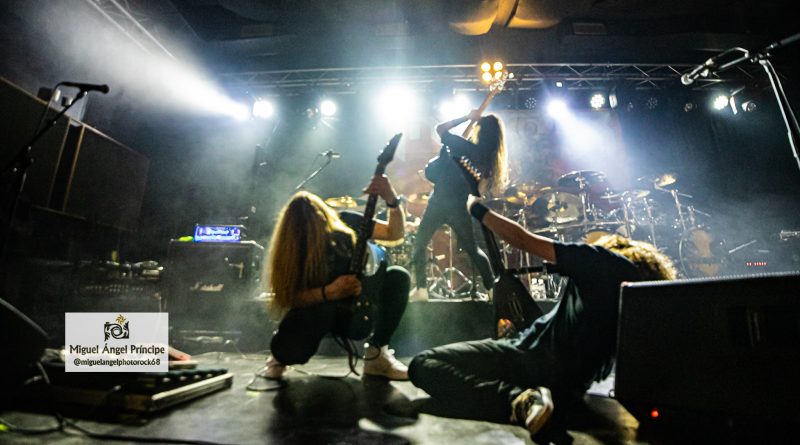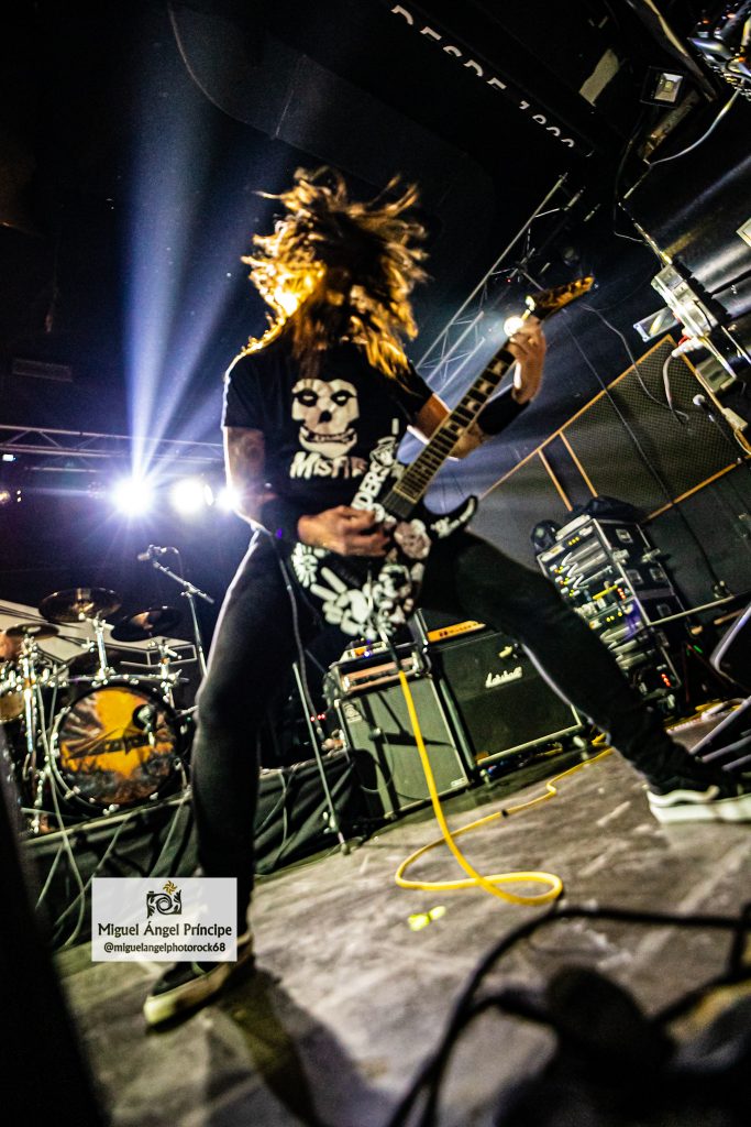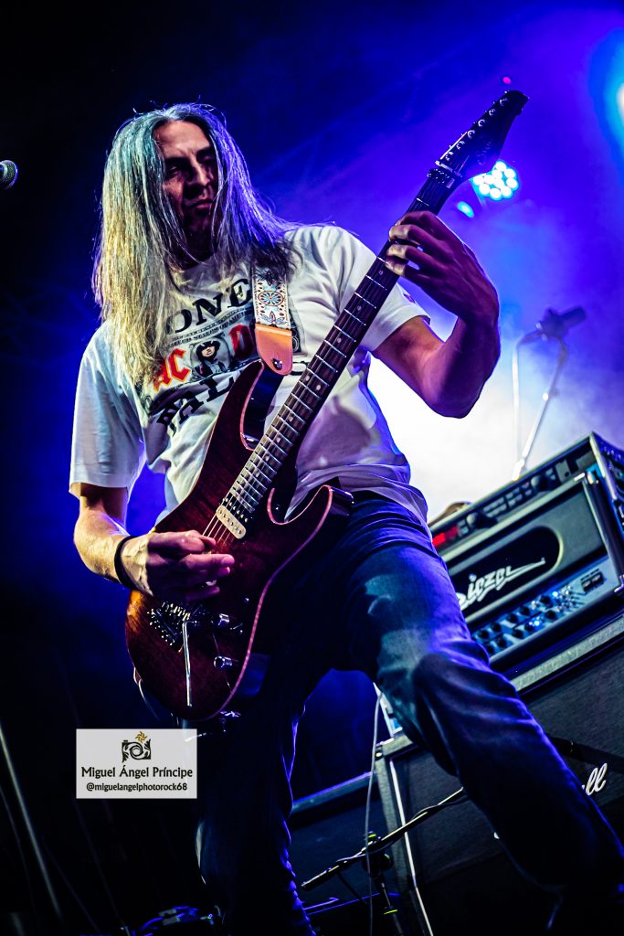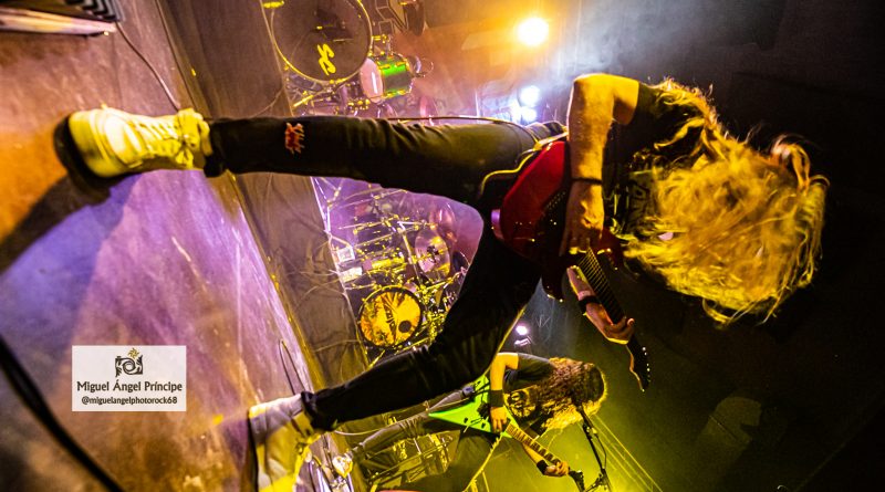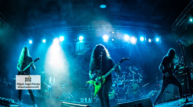 No tardaron en llegar los pogos ya esperados desde el comienzo e imprescindibles para mostrar el respeto a la banda desde la arena mientras ésta se mantenía ocupada con «Unborn Legions», «Oppressive Force» o «Last Day Of Greed», auténticas composiciones de ritmo embriagador que en el caso de la primera nos dejaron admirar ese cambio de ritmo muy del gusto del género con el que pasaron de la cadencia percusionista de un Aníbal en auténtico estado de gracia apoyado por el bajo, a una gestión de rítmica y voz rocosa de elegancia manifiesta mezclada con el mástil de Dani MVN que contó con su compañero ideal en Dani B, una muñeca prodigiosa que «tiró de palanca» para empastar lo que sus dedos gestionaban por otro lado en el mástil generando unos riffs encarecidos que sin prolongarse excesivamente en el tiempo, marcaron los temas dando personalidad a los mismos y una impronta a las seis cuerdas que empastó a la perfección con sus compañeros en una ejecución de arpegios impecable.