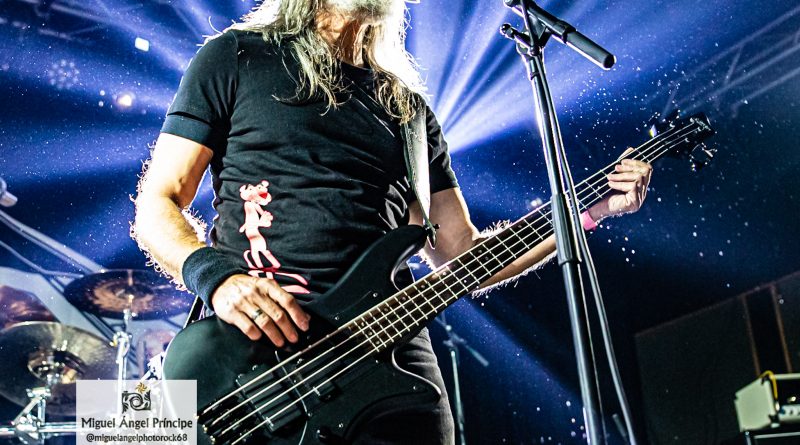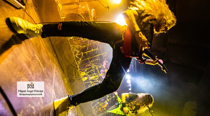 Pasada ya la media noche, con una puesta en escena sobria y bajo un telón de fondo totalmente negro con el logo clásico del grupo en blanco, los miembros de la banda hicieron acto de presencia todavía a medio gas para rápidamente, bajo los potentes cambios de ritmo de la poderosa “Lethal Liberty”, recibir las primeras muestras de aprobación por parte del público y empalmar antes de que se pudiera decir “Ride the Lightning” con los riffs en plan apisonadora de ”Dark Force” y Quimi volando con elegancia sobre el mástil de su guitarra mientras Jónatan, lideraba sin fisuras desde el centro del escenario con su potente bajo y voz sin dar muestras de todos estos años de inactividad musical.