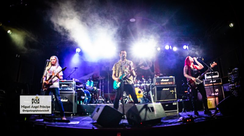 Estribillos pegadizos e intercambio de riffs por parte de ambas guitarras regalaron un Hard Rock cercano que la gente acogió con agrado, animando con palmas a este cuarteto cuyo origen noventero sin modificar sus miembros aporta solidez sobre las tablas al igual que los tres discos que tienen en el mercado, tres redondos resumidos en dos EP’s y un larga duración que verán aumentada la familia en cuanto el fin de gira les permita volver al estudio para dar forma al que será su cuarto trabajo, un disco cuya composición volverá a tener como las anteriores principalmente a Juan Carlos en las líricas y a Rubén en la música para crear temas propios y personales de ritmos pegadizos como los que ya conectan a la perfección con el respetable en un directo, amparado éste por las luces juguetonas de la sala y redondeado por una voz cálida que contó en todo momento con los coros de Rubén y Julia dando ambos color a los punteos de los guitarristas muy cómplices entre ellos y apuntando al público mientras gestionaban arpegios, dando así viveza a la actuación junto con el continuo cruce de baquetas por parte de Javi.