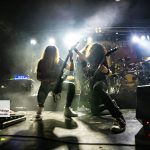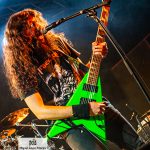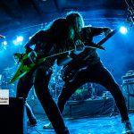 No tardaron en llegar los pogos ya esperados desde el comienzo e imprescindibles para mostrar el respeto a la banda desde la arena mientras ésta se mantenía ocupada con «Unborn Legions», «Oppressive Force» o «Last Day Of Greed», auténticas composiciones de ritmo embriagador que en el caso de la primera nos dejaron admirar ese cambio de ritmo muy del gusto del género con el que pasaron de la cadencia percusionista de un Aníbal en auténtico estado de gracia apoyado por el bajo, a una gestión de rítmica y voz rocosa de elegancia manifiesta mezclada con el mástil de Dani MVN que contó con su compañero ideal en Dani B, una muñeca prodigiosa que «tiró de palanca» para empastar lo que sus dedos gestionaban por otro lado en el mástil generando unos riffs encarecidos que sin prolongarse excesivamente en el tiempo, marcaron los temas dando personalidad a los mismos y una impronta a las seis cuerdas que empastó a la perfección con sus compañeros en una ejecución de arpegios impecable.