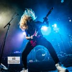 Estribillos pegadizos e intercambio de riffs por parte de ambas guitarras regalaron un Hard Rock cercano que la gente acogió con agrado, animando con palmas a este cuarteto cuyo origen noventero sin modificar sus miembros aporta solidez sobre las tablas al igual que los tres discos que tienen en el mercado, tres redondos resumidos en dos EP’s y un larga duración que verán aumentada la familia en cuanto el fin de gira les permita volver al estudio para dar forma al que será su cuarto trabajo, un disco cuya composición volverá a tener como las anteriores principalmente a Juan Carlos en las líricas y a Rubén en la música para crear temas propios y personales de ritmos pegadizos como los que ya conectan a la perfección con el respetable en un directo, amparado éste por las luces juguetonas de la sala y redondeado por una voz cálida que contó en todo momento con los coros de Rubén y Julia dando ambos color a los punteos de los guitarristas muy cómplices entre ellos y apuntando al público mientras gestionaban arpegios, dando así viveza a la actuación junto con el continuo cruce de baquetas por parte de Javi.