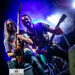 Los arpegios iniciales de «A Matter Of Greed» nos introdujeron en una atmosfera más oscura de la que su elaborado estribillo pronto nos liberó, llegando así el ecuador de la actuación con unos LEGION mostrando su onda más rockera y festiva revisando el clásico de QUEEN «We Will Rock You» para poner luego a toda la sala a corear la letra de su éxito más reconocible «Mili KK», alcanzando con ella las cuotas más altas de comunión con su público de toda la noche antes alcanzar el momento ideal para rebajar el ritmo de la actuación con otra letra en castellano de lo más directa con «La Ruina», de inicio pausado y desarrollo mucho más clásico en vertiente Heavy que sus marcadas cabalgadas thrashers.