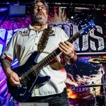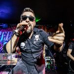 «Senso Della Vida» llegó como un tema sencillo y directo que nos devolvió a la actualidad trayéndonos esas melodías grabadas de teclados a las que en el comienzo hacíamos referencia, las cuales llegaron acompañadas por una batería de riffs muy marcados y abundantes en este tema donde Lochert cogió las riendas, situándose en el filo de la tarima para desafiar con su bajo al público y marcar las notas con gesticulaciones propias de la impronta metalera muy del gusto del respetable, quien se volcó con él y con la canción de excelente base rítmica y muy coreada por todos en un estribillo bailable cuya atmósfera se rompió con «Mr. Nightmist», dándose paso de nuevo a las manos arriba de todos los allí presentes para seguir las instrucciones del cantante, un incansable que marcó su papel en el centro de la escena dedicándose a la entrega a la gente para dejar que fuesen sus compañeros los que jugueteasen con poses más vacilonas y centrándose él en las suyas con un único fin, mover cabezas e incentivar más adrenalina con aplausos y ruido de guitarras en formato solo junto con la base rítmica muy curtida de la mano de un Ali exultante, quien se mantuvo así de enérgico también en la siguiente «Serious Black Magic» con un Mario totalmente protagonista en solitario, pletórico, empático y contagiado del buen ambiente por no decir ambientazo que había en la arena mientras se despachaban con este cañonazo de canción tras la cual llegaron las presentaciones de los componentes del grupo muy aplaudidos por un público que intuyo el final y se adelantó pidiendo más, algo a lo que SERIOUS BLACK no pudo resistirse y anunció la siguiente entre los divertidos acordes de la histórica y simbólica “Bella Ciao” que coreamos entre todos.