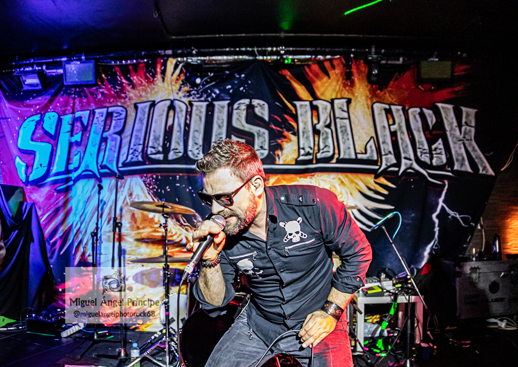 Un potente telón abrazando el posterior del escenario, dejando claro por su energía visual y su exacto colorido casi al óleo que SERIOUS BLACK iba a morir matando, amenazó desde un principio con despedir un afilado Power Metal que se presentó carente de teclados aunque sonaron como lanzados en partes concretas de algunos temas sin hacer mucho ruido pero sí mucho efecto, imprescindibles para una súper banda que se formó en el back de algún concierto con aires de triunfo y se quedaron cortos, ya que los cinco guerreros que se subieron a las tablas las hicieron pequeñas dejando estupefacta a una audiencia que pasó del alucine al headbanging y a los brazos en alto en tan sólo un tema, si es que llegó.