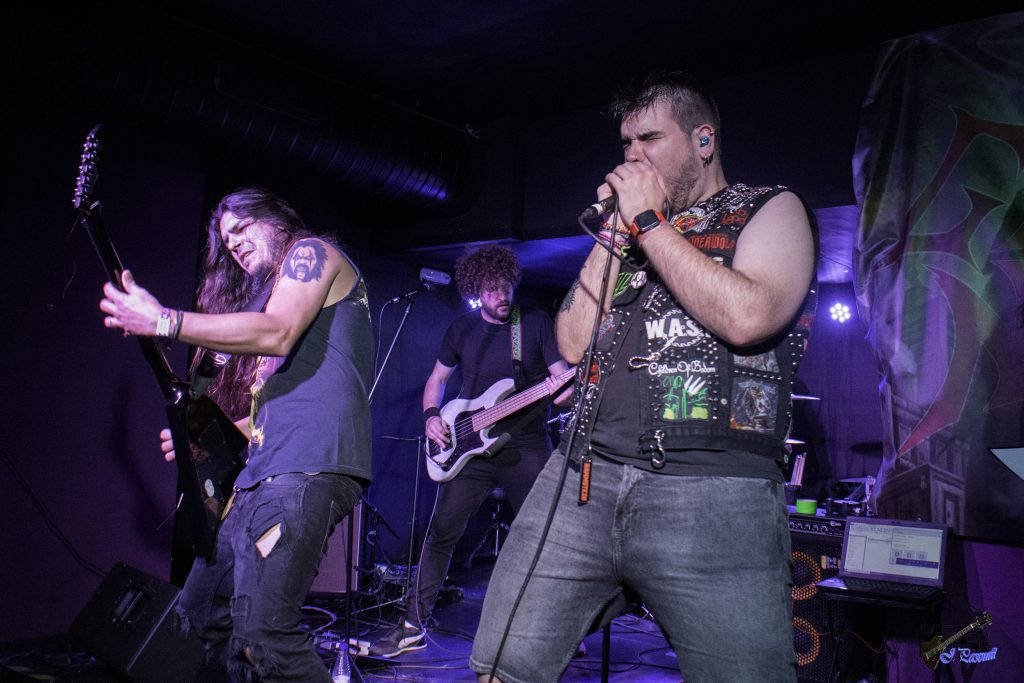 Abrían la noche MORDHIDA con los ritmos frenéticos y de «Evil» donde la banda compuesta por Flavio Orozco y Jamie Marston a las guitarras, Manuel Grande a la voz, Guillermo Rodríguez al bajo y Manu a la batería, para continuar con rompe cuellos «The Butcher» tema incluido en su último trabajo The Idiotic Principle que se encuentran presentando «It’s Alive» tema incluido en su primer Ep Politician’s Sutcin con gran protagonismo de las guitarras daba paso a «Holycaust» pura melodía sin perder un ápice de agresividad y donde Manuel sacaba la biblia en llamas todo un clásico ya en los directos de la banda  para continuar con «From First To Last» Y «Not My Cross» dos auténticos trallazo al más estilo Old School Thrash Metal a los que daba continuidad «The Puppeteer» para lucimiento de Guillermo al bajo. «The Idiotic Principle»  con Manuel cantando bandera en mano ponía fin al set list marcado pero aún quedaba una última sorpresa con «I’m Free, I,m Now» tema incluido en este último trabajo perteneciente a The Natal Pride banda en la milito Flavio