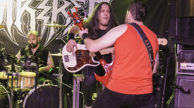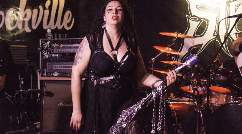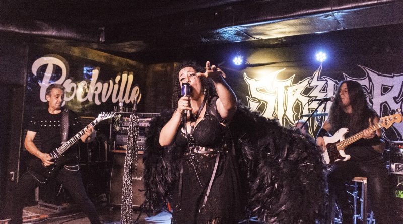 En los momentos previos al concierto nos sorprendió fue ver a David Caballero, bajista de ADAREL con muletas, más tarde conversando con el nos comentaba que la noche del martes a pocas horas del concierto de Ciudad Real se encontraba en urgencias por una caída y con el miedo a no poder hacer frente a los tres compromisos que tenían por delante, afortunadamente y tirando de profesionalidad no fue así aunque tuviera que tocar sentando en un taburete. «Ojos de plata» era el tema escogido para dar comienzo al espectáculo, con Celia ondeando la bandera pirata, en el que los cacereños dieron todo de si con una buena dosis de Heavy Metal de corte clásico con toques Hard rokeros temas como «Sin Piedad» o «Inmortal» dejaron una buena muestra de los que este quinteto formado por Celia Maya a la voz, que por cierto pidió disculpas por no estar a pleno rendimiento a causa de haber pasado recientemente el Covid y como bien manifestó en ese momento uno de los espectadores quien lo diría por que lo suyo fue todo un derroche de voz, Los riff de guitarra por parte de Ángel Seco y Sergio Sánchez, la batería de Primi Mcbrain, junto con el ya mencionado David Caballero al bajo. todo un torbellino de calidad musical y energía sobre el escenario que nos dejo momentos memorables como Celia y Sergio entremezclados con el publico tocando y haciéndole cantar durante las dos versiones que se marcaron «Maldito sea tu nombre» de ANGELES DEL INFIERNO Y «Reencarnación» en las que la voz de Celia me recordó mucho a la de la propia Azucena, destacable también el momento de la preforman que se marcaron durante la interpretación de «La Parca» con Celia ataviada con unas alas negras y el punto final de la mano de «Heavy Metal» para dejar la adrenalina y las sensaciones por todo lo alto para la descarga de STRIKER