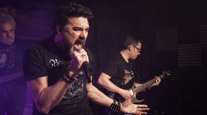 BEGGARS BLADE eran los encargados de abrir la velada. Hacía unos años que no tenía oportunidad de ver a la banda, la última vez aún estaba el tristemente desaparecido Vicente y no se habían producido el resto de los cambios en la formación. He de decir que lo que vi y escuche me dejó gratamente sorprendido, con un sonido que ha ganado en contundencia y una continua integración con el público bajando Raúl en diversas ocasiones a cantar entre el mismo. Se comieron literalmente el escenario en todo momento para deleite de los numerosos fans que se encontraban allí congregados, que hubieran mantenido a la banda durante horas sobre el escenario. temas como «Coquistadores» o «Herederos del rock» fueron coreados como una sola voz.
