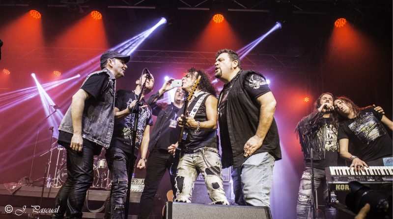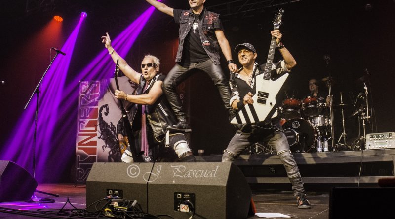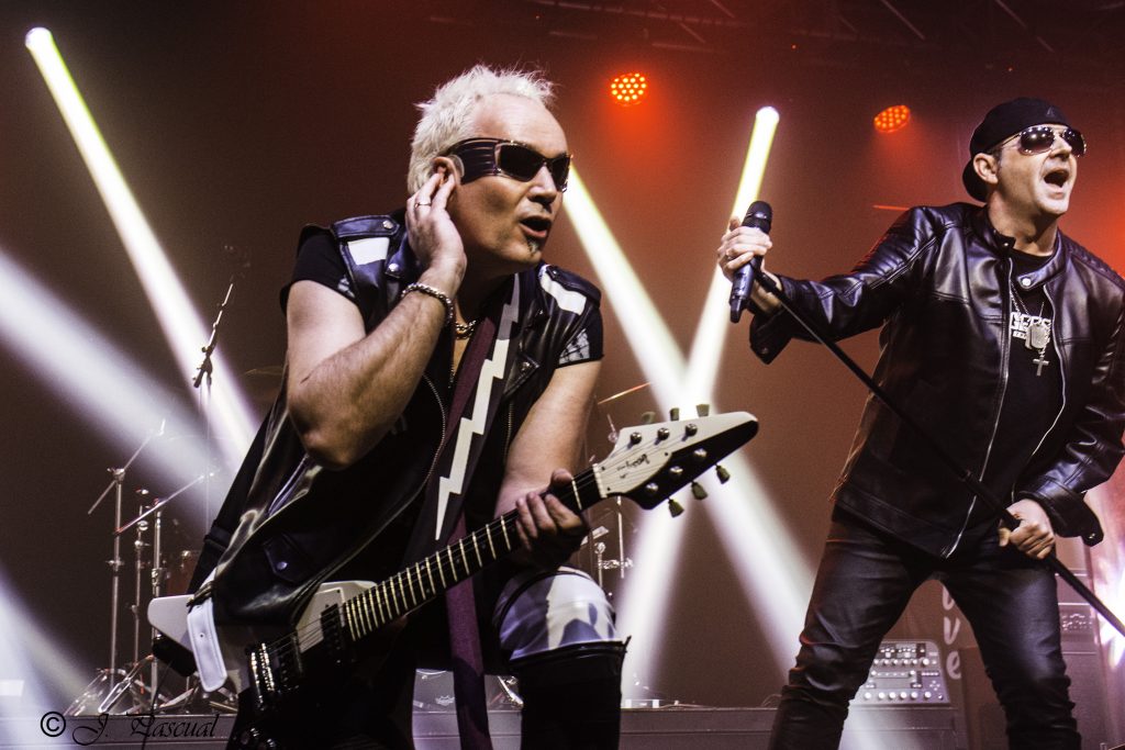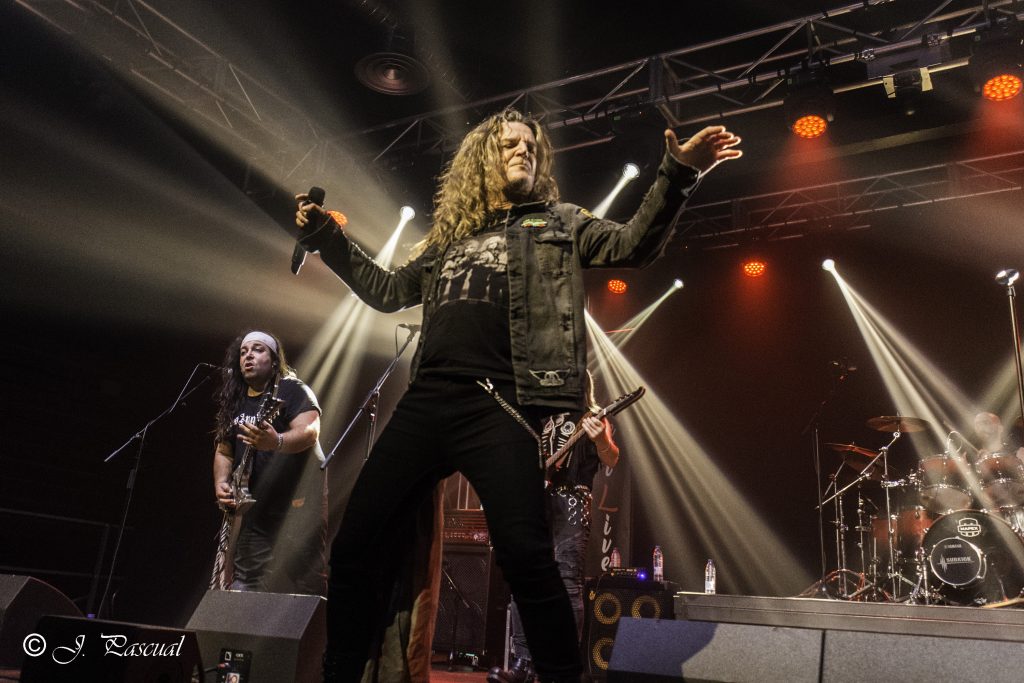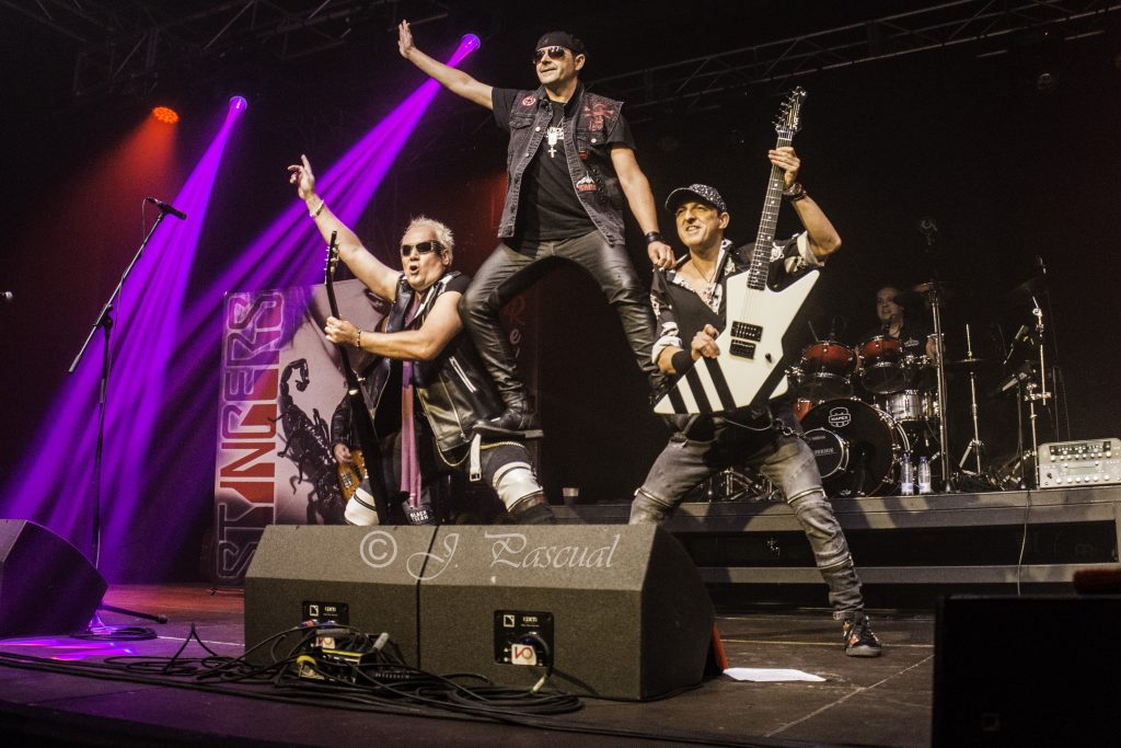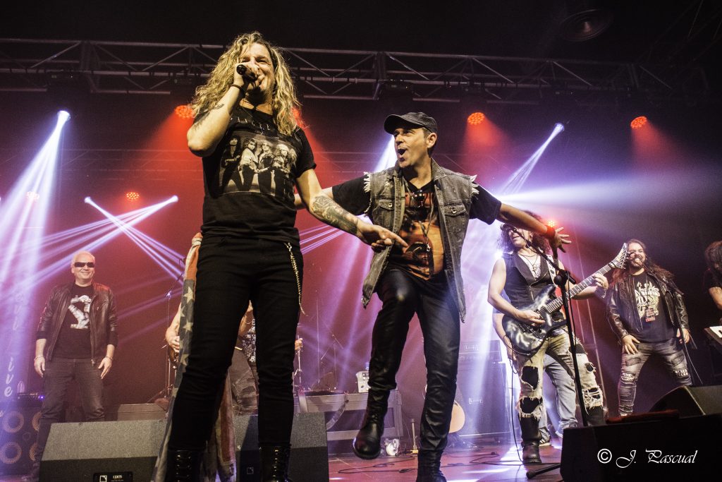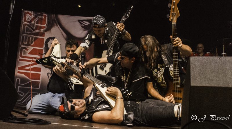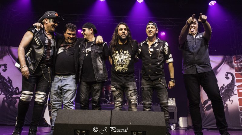 THE STINGERS, fueron los primeros en saltar a escena, la banda Sevillana de tributo a SCORPIONS, «Coming Home» el primer tema de la noche, dejo claro ya desde ese momento por que están considerados como uno de los mejores tributos a la banda alemana, habiendo llamado la atención de los propios SCORPIONS con los que mantienen una buena relación, llegando incluso a tocar con alguno de ellos en diferentes ocasiones. Aunque lo más llamativo por lo menos para mi es la perfecta simbiosis que han llegado a tener con el sonido de SCORPIONS con el lanzamiento de una serie de temas propios que al escucharlos, uno tiene que pararse a pensar si es algún tema que no conoces de los alemanes o se trata de un tema propio de STINGERS como pudimos comprobar en directo con «She is the girls» o «On the way». Por otra parte una cuidada puesta en escena, capaz de trasmitir la esencia de la banda alemana, junto con una fiel interpretación de los temas, junto con una muy conseguida mimetización con los componentes originales sobre todo en el caso de Panchi con Klaus Meine y Javier Ortega con Rudolf Schenker, junto a ellos Mario j. Alcantara como su Mattias Jabs particular y Alfonso Tovales y Ramon Dubison al bajo y la batería respectivamente consiguen que uno se vea trasladado a un concierto en directo de SCORPIONS escuchando temas tan míticos como «Still loving you», «Blackout» o «Big City Nights» para la que contaron con la colaboración de Eduardo García a la guitarra que se mantendría para la recta final con «Wind of change» y «Rock you like hurricane» en una versión castellanizada.
