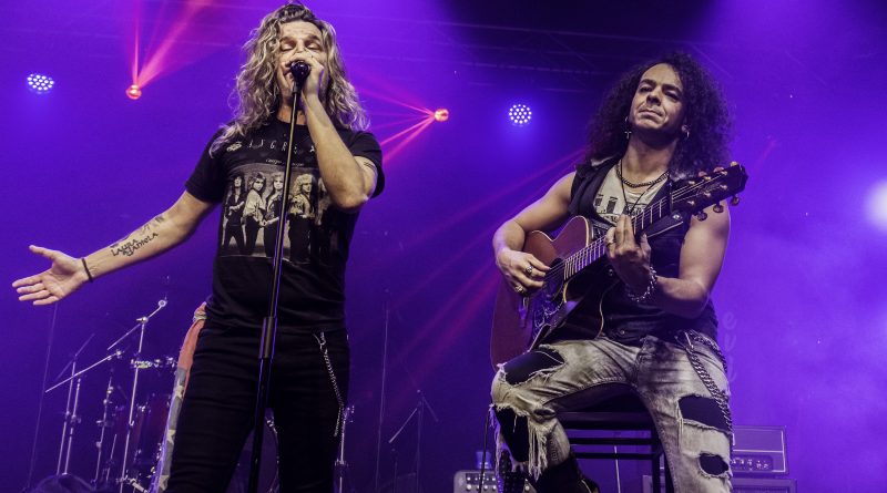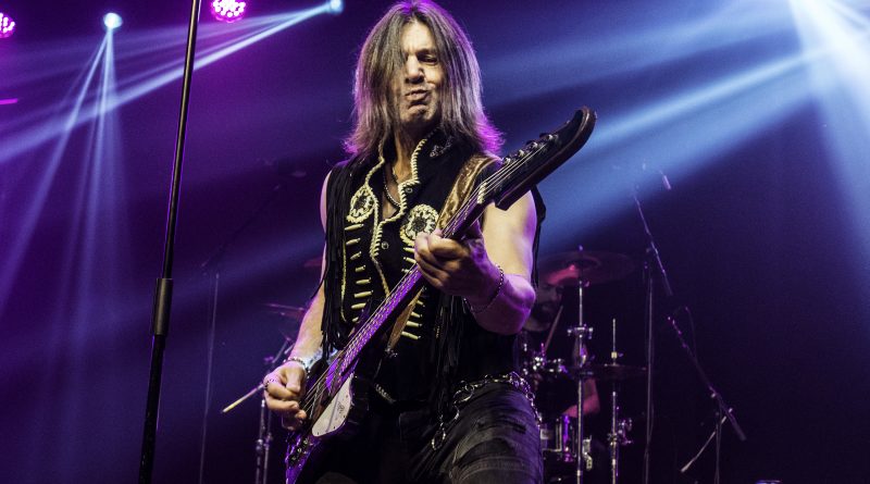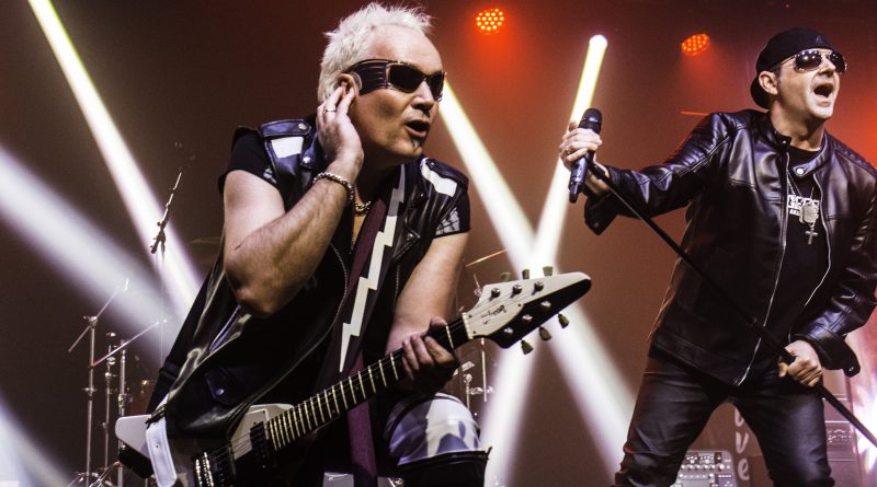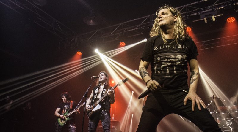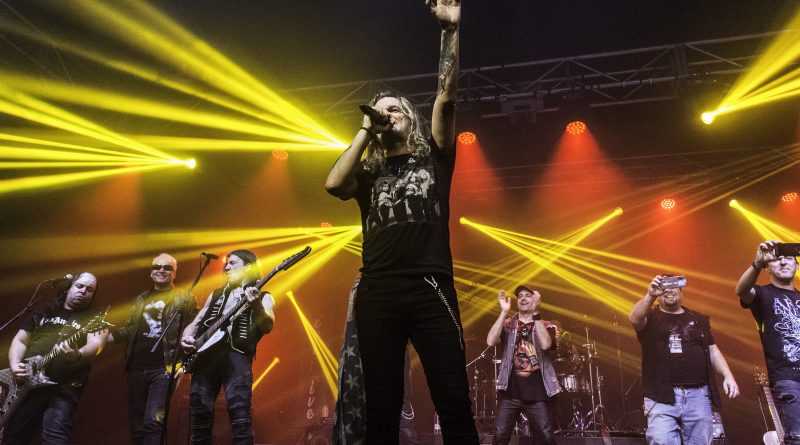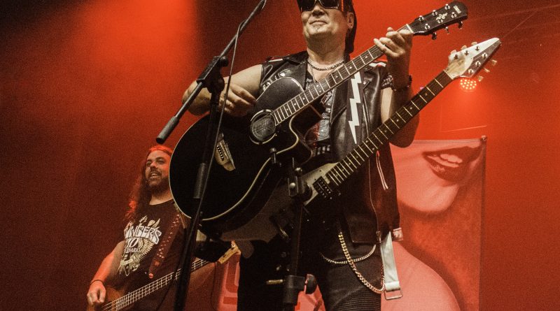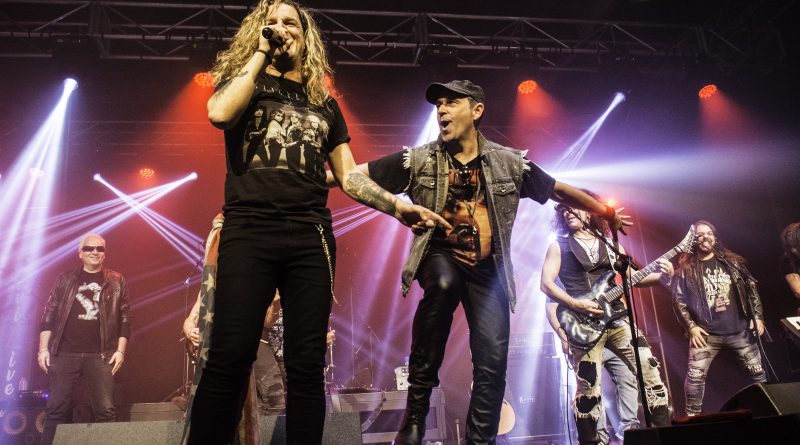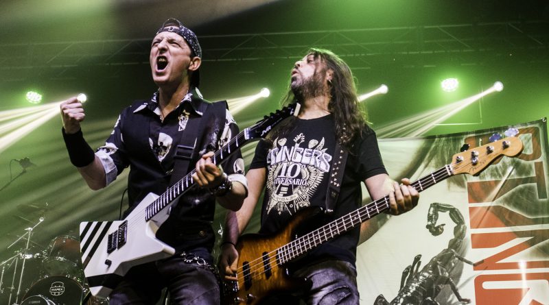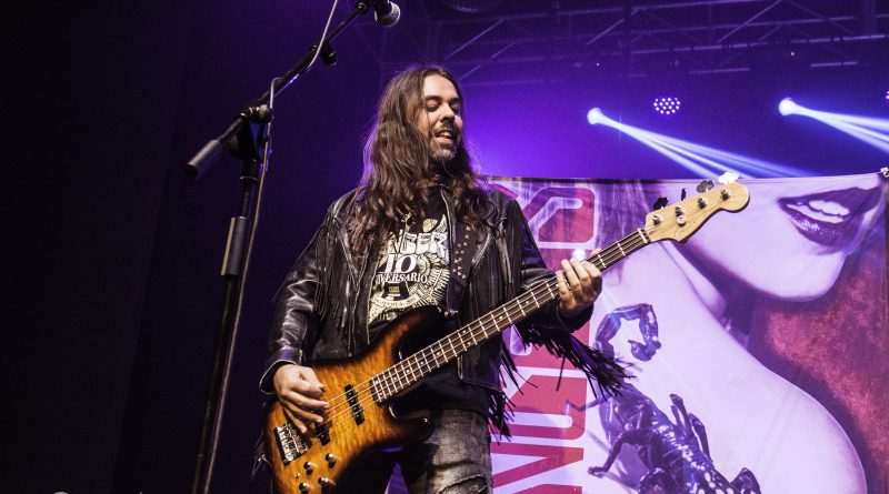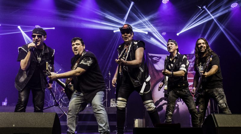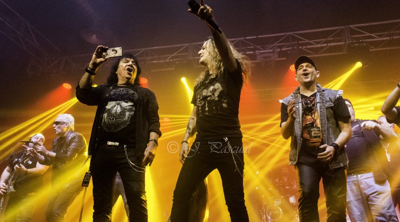 THE STINGERS, fueron los primeros en saltar a escena, la banda Sevillana de tributo a SCORPIONS, «Coming Home» el primer tema de la noche, dejo claro ya desde ese momento por que están considerados como uno de los mejores tributos a la banda alemana, habiendo llamado la atención de los propios SCORPIONS con los que mantienen una buena relación, llegando incluso a tocar con alguno de ellos en diferentes ocasiones. Aunque lo más llamativo por lo menos para mi es la perfecta simbiosis que han llegado a tener con el sonido de SCORPIONS con el lanzamiento de una serie de temas propios que al escucharlos, uno tiene que pararse a pensar si es algún tema que no conoces de los alemanes o se trata de un tema propio de STINGERS como pudimos comprobar en directo con «She is the girls» o «On the way». Por otra parte una cuidada puesta en escena, capaz de trasmitir la esencia de la banda alemana, junto con una fiel interpretación de los temas, junto con una muy conseguida mimetización con los componentes originales sobre todo en el caso de Panchi con Klaus Meine y Javier Ortega con Rudolf Schenker, junto a ellos Mario j. Alcantara como su Mattias Jabs particular y Alfonso Tovales y Ramon Dubison al bajo y la batería respectivamente consiguen que uno se vea trasladado a un concierto en directo de SCORPIONS escuchando temas tan míticos como «Still loving you», «Blackout» o «Big City Nights» para la que contaron con la colaboración de Eduardo García a la guitarra que se mantendría para la recta final con «Wind of change» y «Rock you like hurricane» en una versión castellanizada.