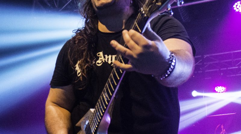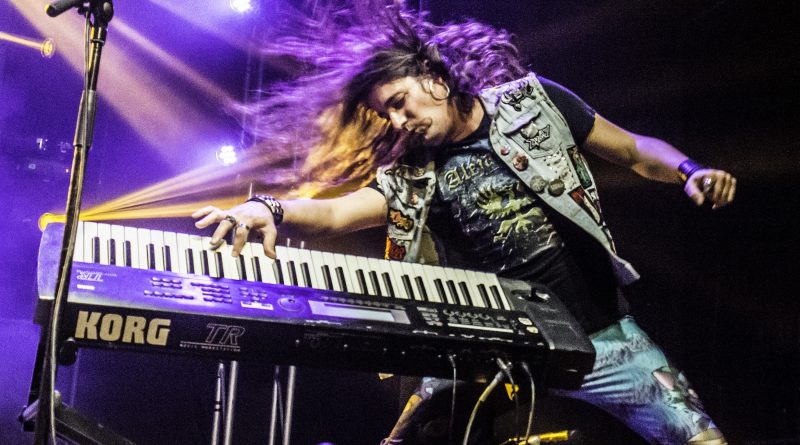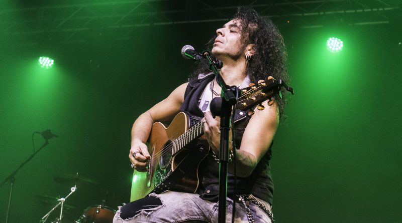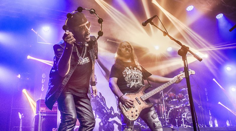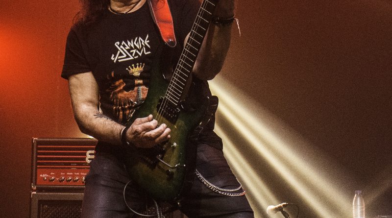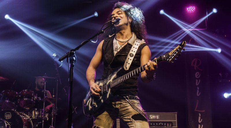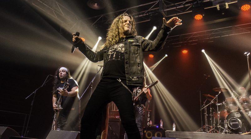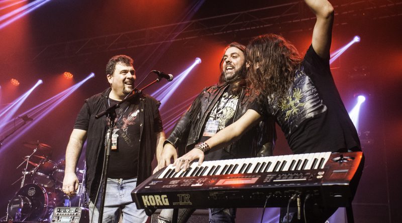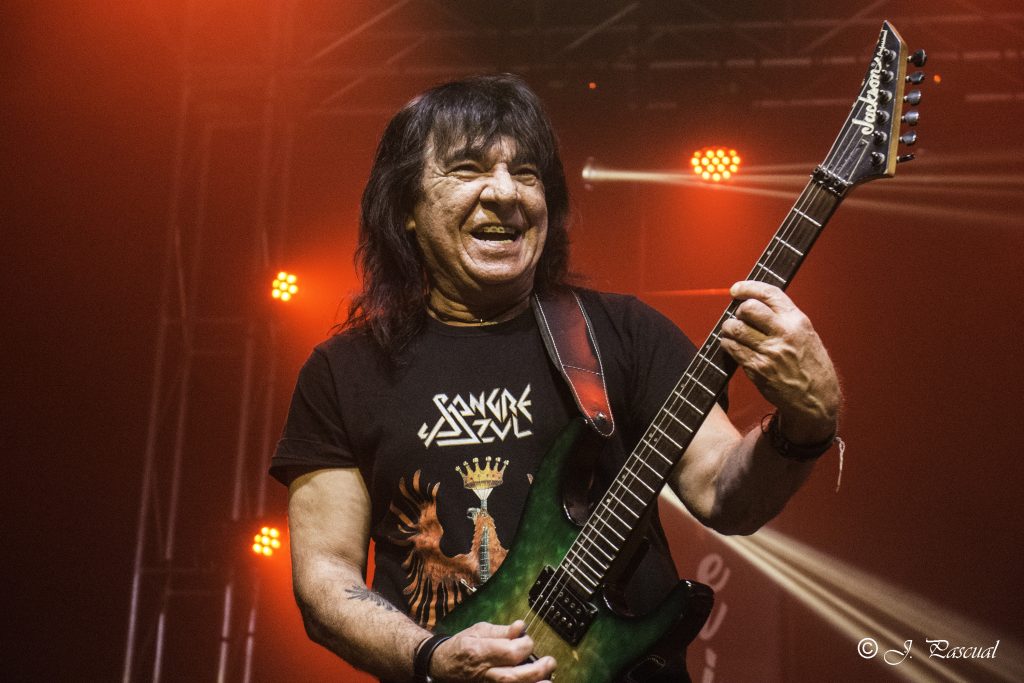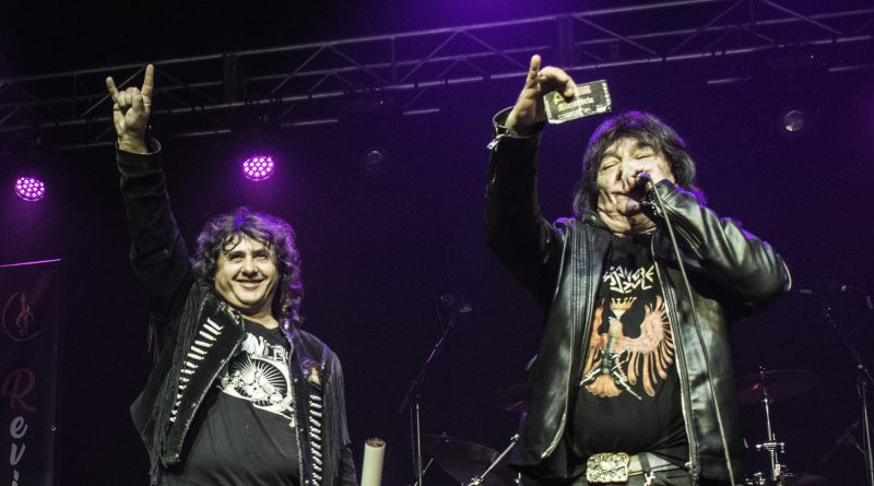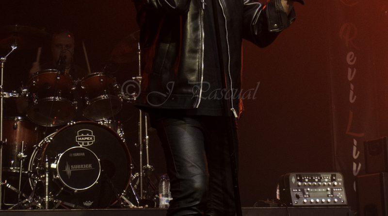 Momentos después ALEJANDRIA ocupaban su lugar sobre el escenario de la Revi, para hacernos rememorar a todos los presentes una parte de la historia del Rock patrio con su tributo a SANGRE AZUL el sonido de los teclados de Ismael Filteau, la más reciente incorporación a la banda nos dejaban la primeras notas de «Abre fuego» a la que siguieron toda una batería de himnos como «Cien años de amor» o «Todo mi mundo eres tu» coreados por un publico entregado ya desde la primera nota y que protagonizo un momento muy especial, cuando Miguel Araujo sacó una guitarra acústica y un taburete para empezar los primeros acordes de “El Silencio De La Noche” mientras el publico como si de una sola garganta se tratara cantaba cada verso de la misma, enmudeciendo a Fran Vázquez y haciendo que unas lagrimas asomaran en sus ojos, emoción que demostró lo grande que es no solo como cantante con una de las voces más privilegiadas de panorama nacional, ni como un magnifico frotman, si no como persona. Tras reponerse no sin antes recordarnos que éramos una cabrones que haber como seguía el ahora, llegaba «Reino sin ley» donde las guitarras de Miguel Araujo y Sebastián Mato sonaron impresionantes, los momentos y las sensaciones se acumulaban con Fran interpretando entre el publico «No puedo estar sin ti» para regresar al escenario con otro gran clásico el contundente «Piel de serpiente» en el que la banda sonó como una autentica maquina gracias en parte a la pareja ritmica que forman Berto Lopo al bajo y Noel de Dios a la batería.