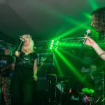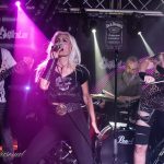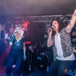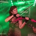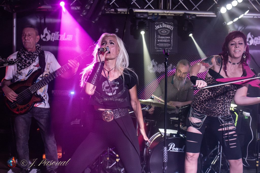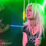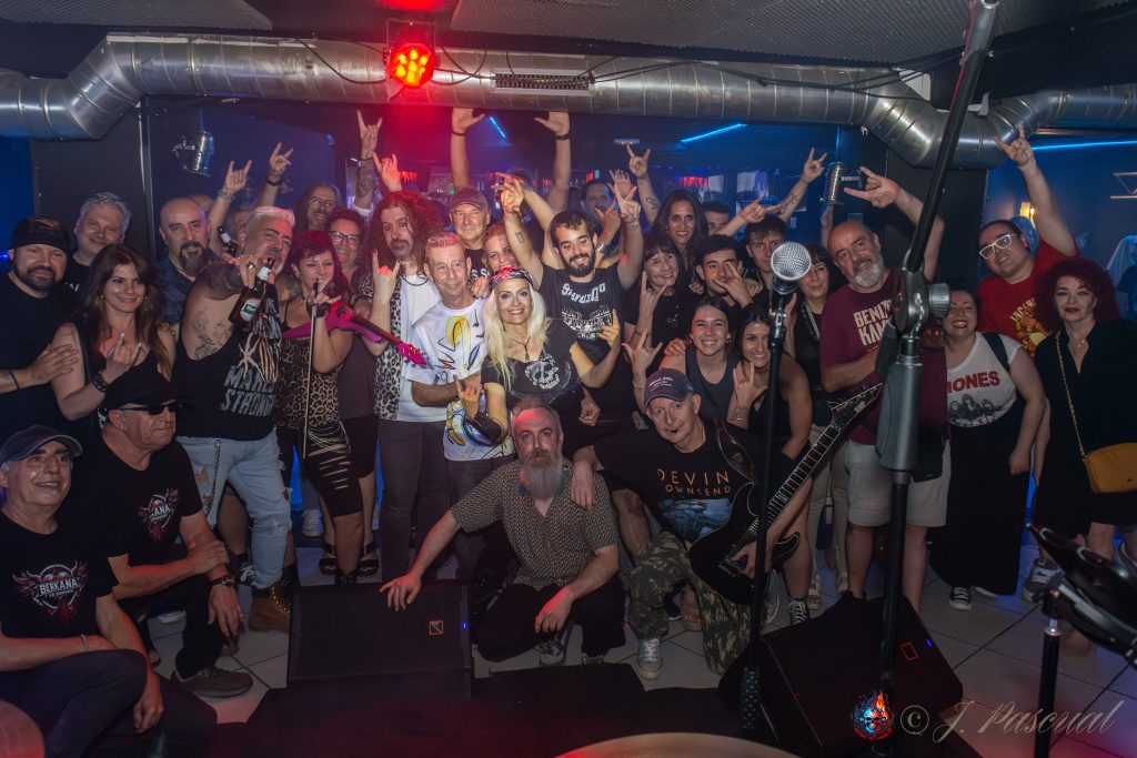 Tras ese pequeño descanso, para la voz de Berkana, no así para el cuerpo, ya que durante parte de la actuación de sus compañeros la pudimos ver mezclada entre el público como una espectadora más, regresaba a su puesto central para presentarnos al segundo de los invitados de la noche, Roberto Corrochano vocalista y guitarra de 8 CUERDAS, que la acompañaría a la voz en «Testigo». Con la sala cada vez más animada y entregada seguían cayendo los temas «Si Te Vas», «En Mi Habitación» para adentrarse así ya en la recta final con «Sigo Esperando» con un marcado ritmo Funky dedicando a ese tipo de productores que prometen y no llegan a cumplir, La pegadiza «Dice la Leyenda» ponía el punto y aparte antes de los siempre esperados bis que llegaban con «Viaje Astral» con Berkana, mezclándose entre el público para cantar. Encarni nuevamente se subía al escenario para fundir las notas de su violín con las guitarras de Paco y Mariano en «Desde El Infierno» perfecto broche final a una buena noche de Rock’n’Roll, que tras el correspondiente posado final junto al publico, aún permitiría gracias a ese encanto que tienen las pequeñas salas de poder compartir unos momentos con los protagonistas de la noche.