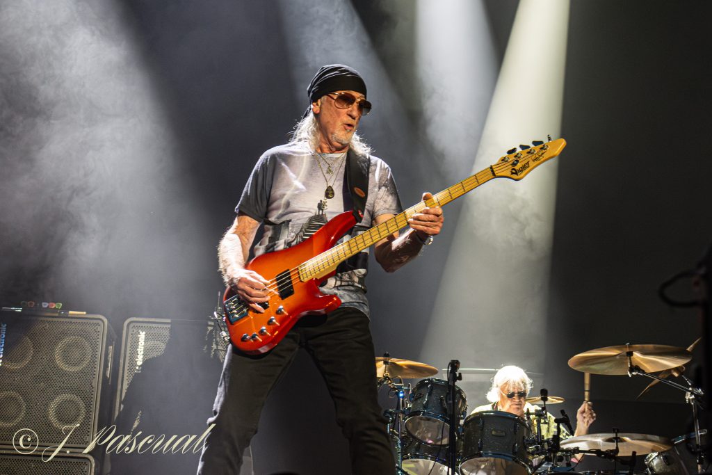Llegada la hora añorada y con una puntualidad británica, la banda tomaba posiciones entre los aplausos del público que abarrotaba él recinto del auditorio del Parque Tierno Galván, que en los últimos tiempos ha vuelto a recuperarse para la música, algo de lo que seguramente estaría muy feliz de comprobar el viejo profesor. Pero volvamos a lo que nos ocupa, los primeros y reconocibles compases de «Highway Star» hacían que una corriente de euforia recorriera en esos momentos todo el auditorio, poco importaba que como pudimos comprobar en apenas unos minutos la voz de Ian Gillan, esa noche no estuviera en plenas facultades, aunque hay que reconocer que pese a todo mantuvo un más que digno papel, poniendo todo de su parte, no hay que olvidar que el cantante este mismo verano cumplirá 79 años, pero que leches son los Purple pioneros e historia viva de la música en general y del Hard Rock en particular y todo se perdona cuando junto a Gillan, Roger Glover, Ian Paice, Don Airey y su más reciente incorporación Simon McBride, te trasportan a una banda sonora que forma parte de tu vida.