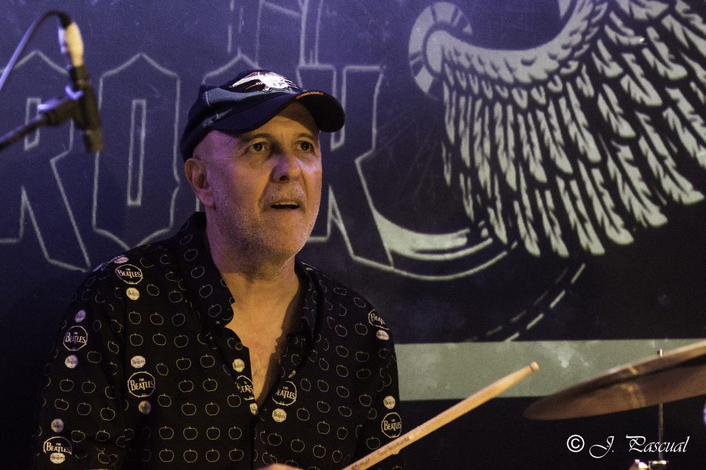 Los baterías son esos miembros indispensables para el funcionamiento de una banda, que en la mayor parte de los casos pasan desapercibidos, habitualmente pesimamente iluminados, escondidos al fondo del escenario, y sin embargo en este caso el protagonista absoluto de la noche, tenia nombre propio LUIS GARCÍA y como arma de trabajo un par de baquetas y en su haber la pertenencia a bandas, tan representativas e importantes dentro del panorama musical de nuestro país, como SOBREDOSIS, ÑU, RAMONCIN o LA ORQUESTA MONDRAGON. Rodeado de buenos amigos, Manuel Escudero a la voz, Steve Zee y Manuel Silva a las guitarras, y Miguel Jiménez al bajo, Luis repasaría durante la noche su trayectoria por dichas bandas. con el aliciente añadido de contar para algunos temas con la presencia de José de Benito (Pajarito) a la guitarra el que fue también miembro de SOBREDOSIS.