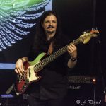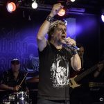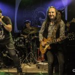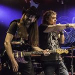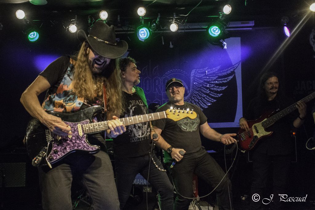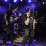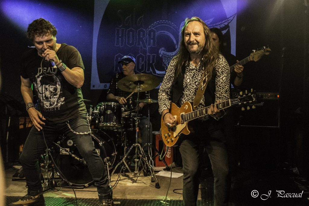 Volver a escuchar en directo, alguno de los temas de SOBREDOSIS, era sin duda uno de los momentos más esperados de la noche y este llegaba cuando Manuel Silva, cedía su puesto a la guitarra a José de Benito, para que este defendiera una vez más sobre el escenario junto con Luis alguno de los temas de la mítica banda de la que ambos fueron miembros fundadores, hace más de cuarenta años como el propio Luis nos recordaba al presentarle. «Alíate» era el primer tema elegido de los cinco que sonarían a continuación y que a muchos de los que estábamos en la sala nos trasportarían a muchos años atrás, cuando acudíamos a los primeros conciertos de la banda. El inconfundible duelo de guitarras de «Tu no eres el mejor» protagonizado en esta ocasión por Steve y José nos ponía la piel de gallina. La deliciosa versión del ‘Doctor Doctor’ de UFO, que formo parte de su segundo álbum Sangre Joven, «Caliente como un volcán» seguía desatando las emociones. Como no podía ser de otra forma uno de los temas más emblemáticos de la banda no podía faltar a la cita, por lo que «Chico» era el tema elegido para cerrar esta parte del concierto.