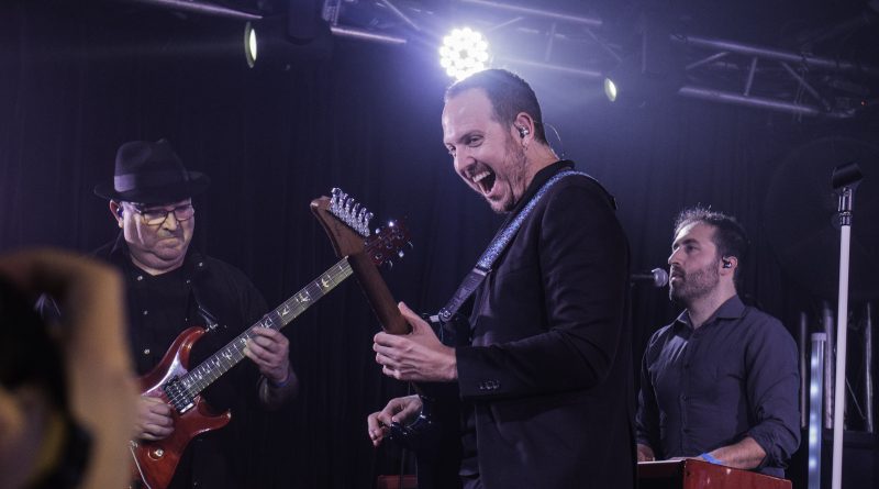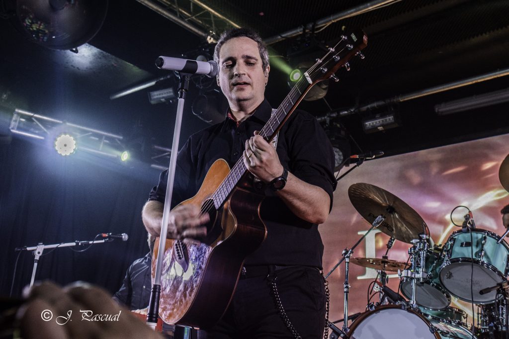 Marcaban las nueve horas en el reloj cuando los sonaban los primeros compases de la intro y los componentes de la banda tomaban posiciones sobre las tablas del escenario de una abarrotada Sala Mon que colgaba el cartel de no hay localidades, acogidos por una gran ovación, y dispuestos a complacer a su público y dar todo de sí en una noche que prometía ser épica con el aliciente extra de la presencia de ilustres invitados como Julio Castejón, Isra Ramos y Francisco José Mazuecos. «Culpable» era el tema escogido para el arranque, tema que como pasaría con todos y cada uno de los que sonaron a lo largo de la noche fue coreado y cantado por el público, junto a la banda. Personalmente era la primera vez que tenía ocasión de ver en directo a la banda, si bien lógicamente si había escuchado sus discos, y leído las crónicas de mis compañeros de conciertos anteriores que podéis encontrar en nuestra web y he de decir que ya desde ese primer tema me encontré atrapado, por el sonido y la elegancia que trasmite la banda formada por Ángel Belinchón a la voz, Guillermo Guerrero y Matías Orero a las guitarras, David Mascaró al bajo, Miguel Centelles a los teclados y Pedro Corral en la batería.